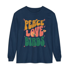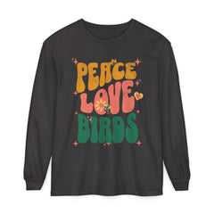 Peace Love Birds Long Sleeve T-Shirt - Unisex Garment-Dyed Tee for Relaxed Vibes Peace Love Birds Long Sleeve T-Shirt - Unisex Garment-Dyed Tee for Relaxed Vibes