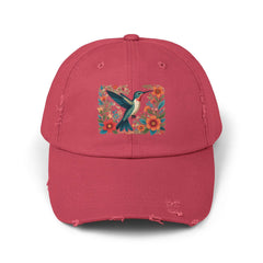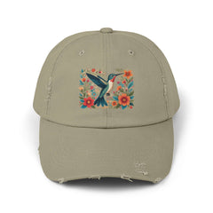 Hummingbird In Bloom Vintage Style Hat - Unisex Distressed Cap Hummingbird In Bloom Vintage Style Hat - Unisex Distressed Cap