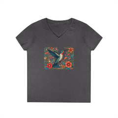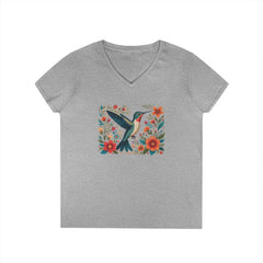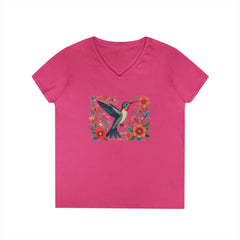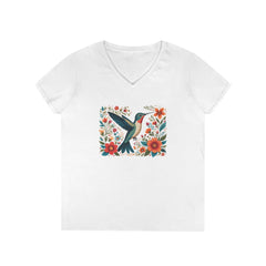 Hummingbird Blooms Ladies' V-Neck T-Shirt Hummingbird Blooms Ladies' V-Neck T-Shirt