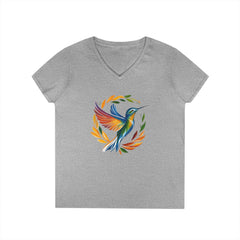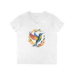 Rainbow Hummingbird Ladies' V-Neck T-Shirt Rainbow Hummingbird Ladies' V-Neck T-Shirt