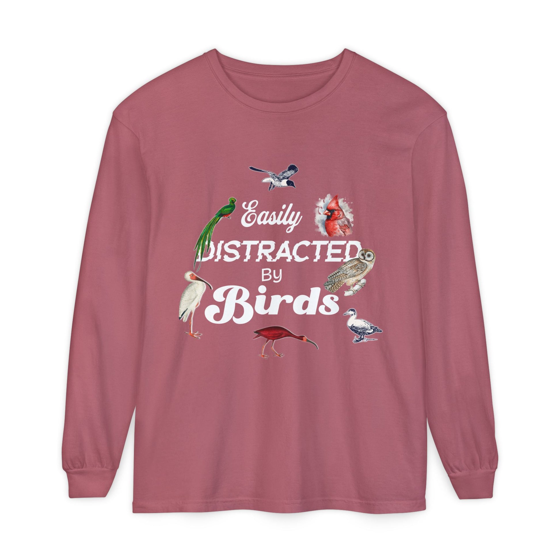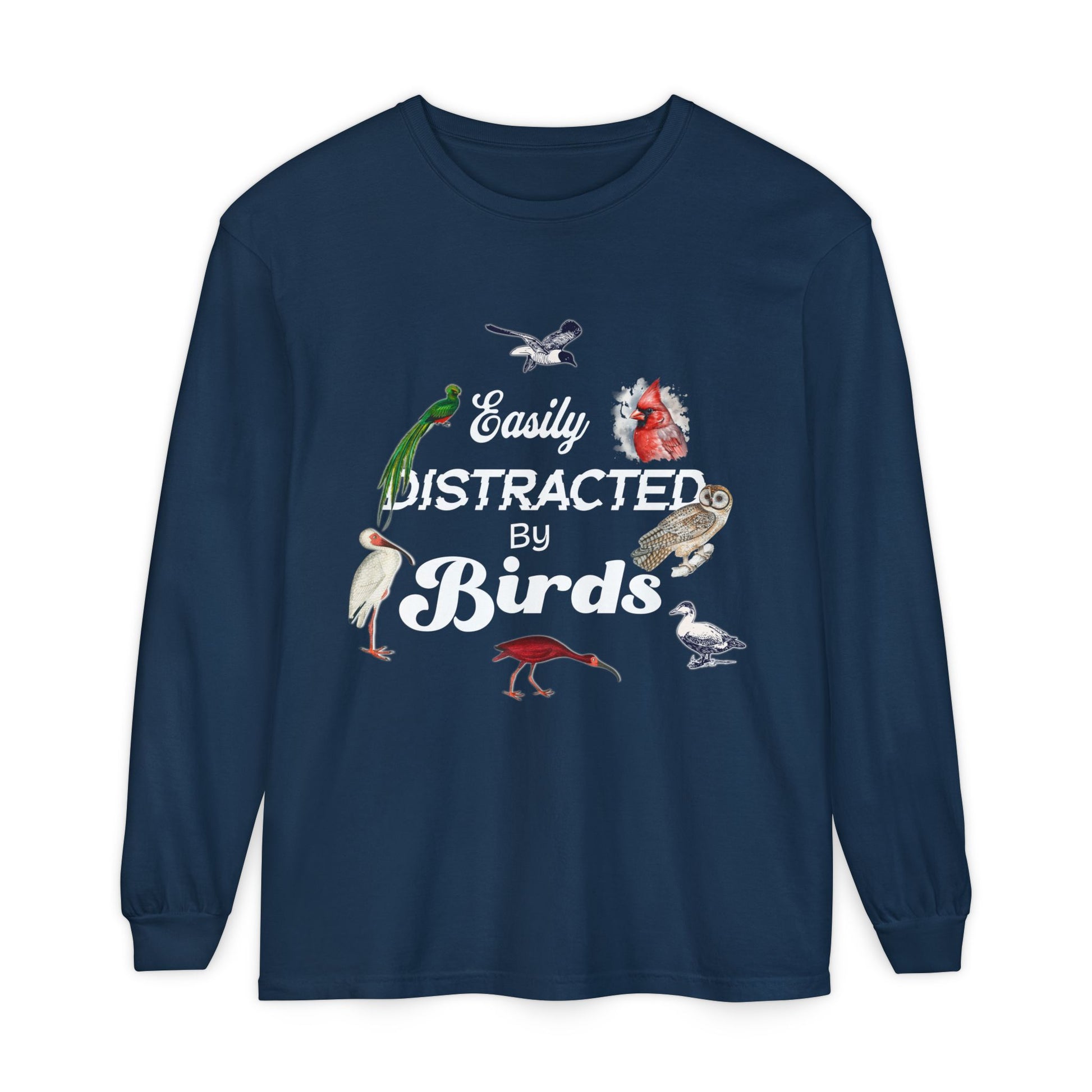 Easily Distracted by Birds Long Sleeve T-Shirt | Unisex Casual Tee for Bird Lovers
