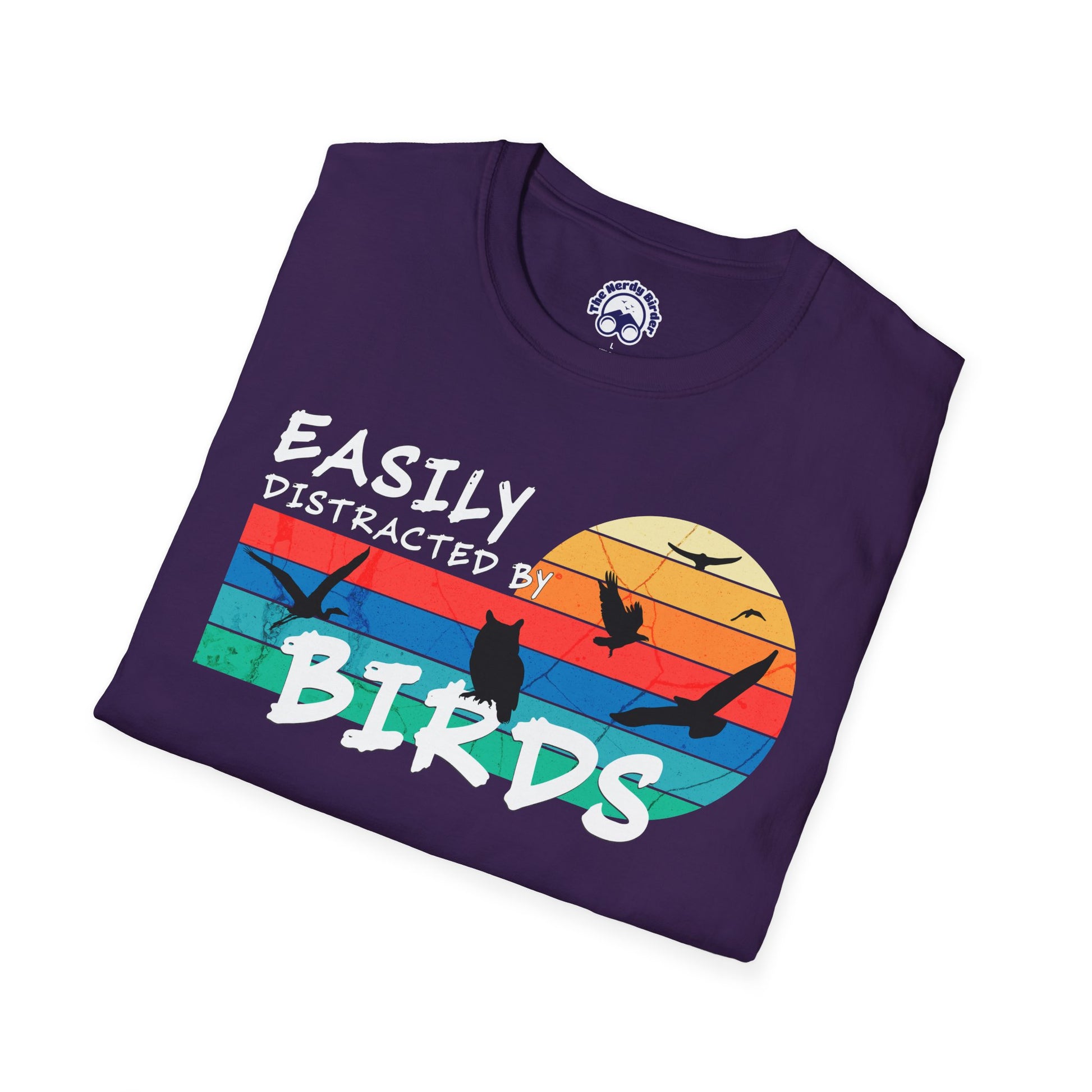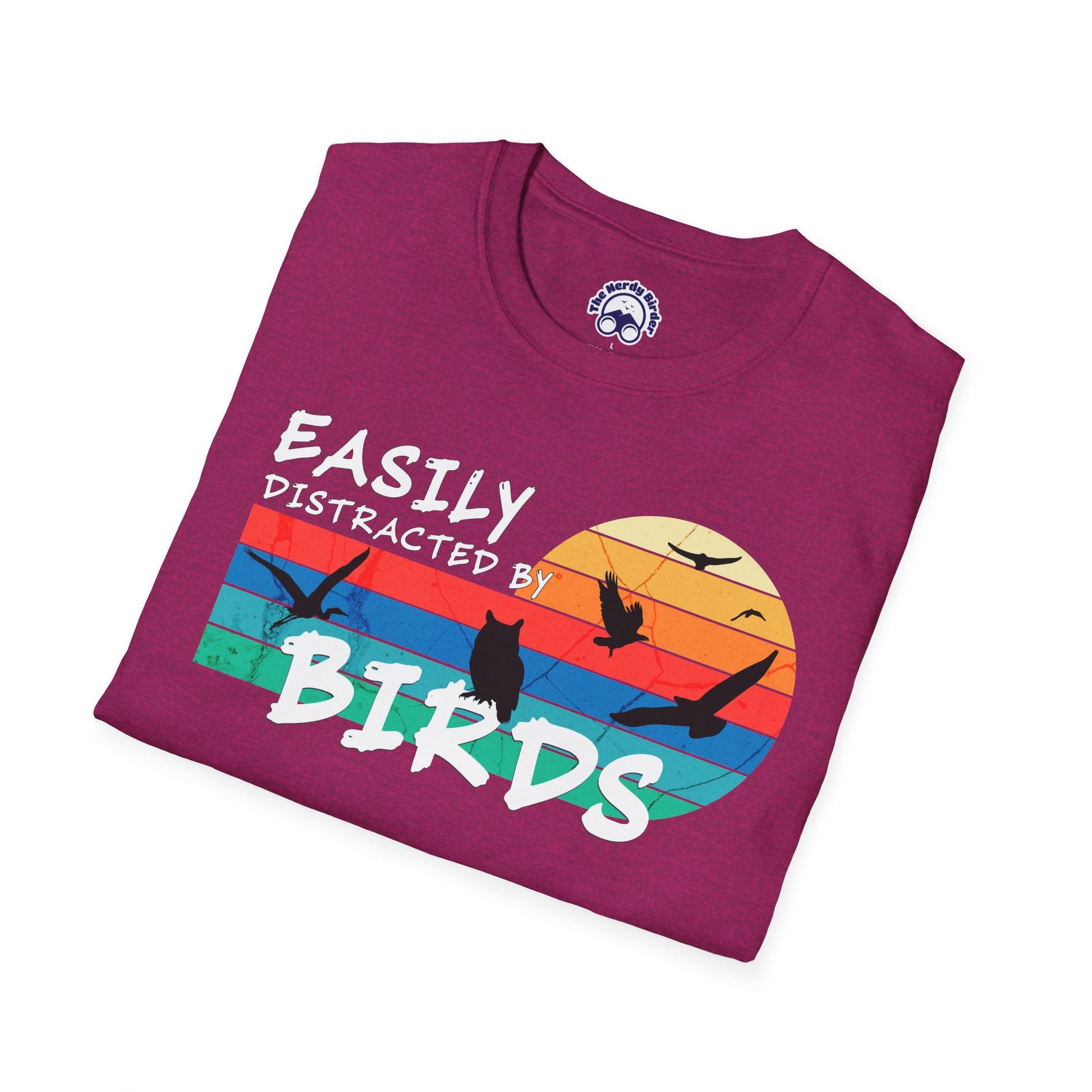 Designed for birders, nature lovers, and anyone who appreciates the quiet pull of the outdoors, the Easily Distracted by Birds tee combines a classic retro look with a comfortable, everyday fit. The vintage sunset graphic and silhouetted birds feel timeless—never trendy—making it a shirt you will actually reach for again and again.