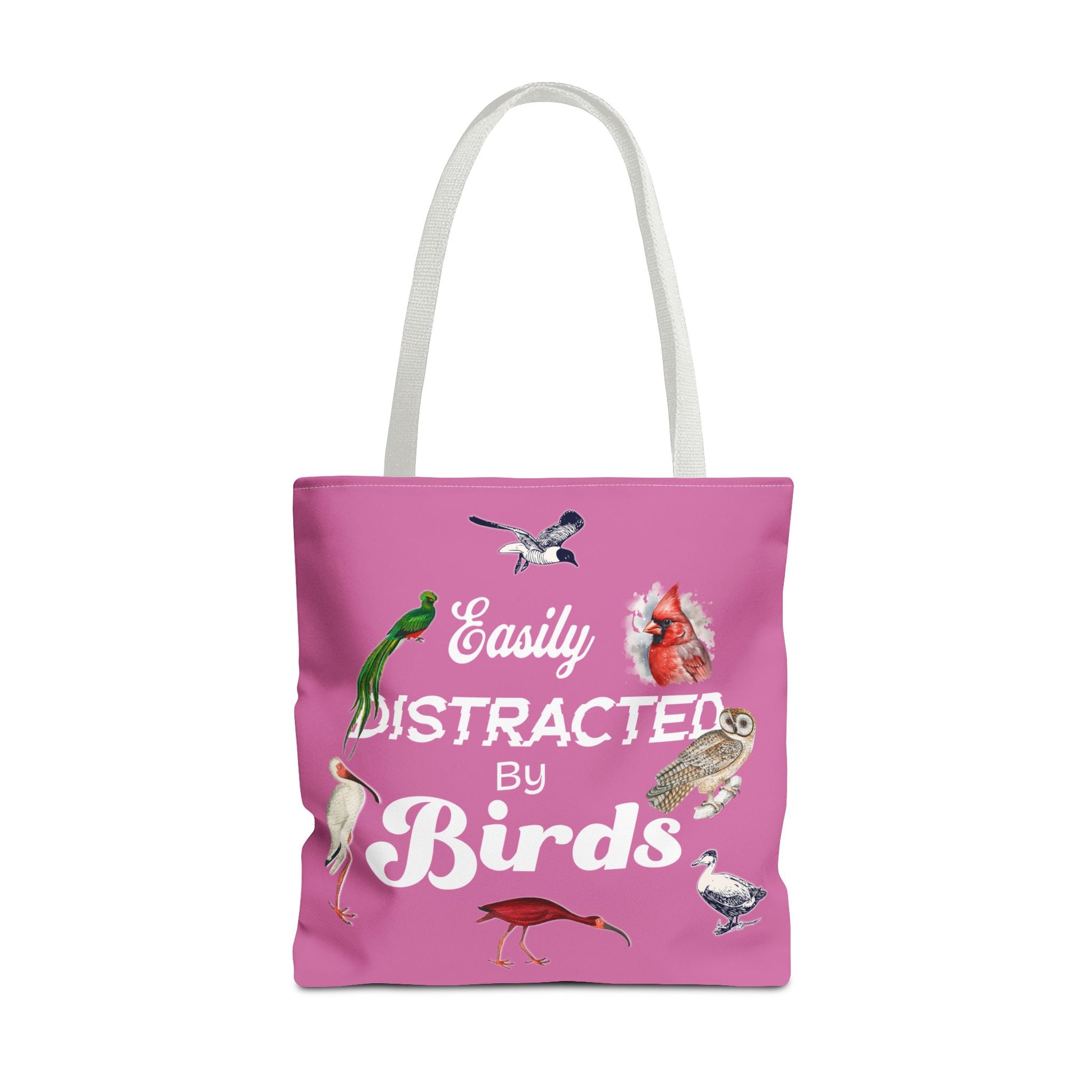 Easily Distracted by Birds Tote Bag in Pink - Fun and Quirky Bird Design for Bird Lovers