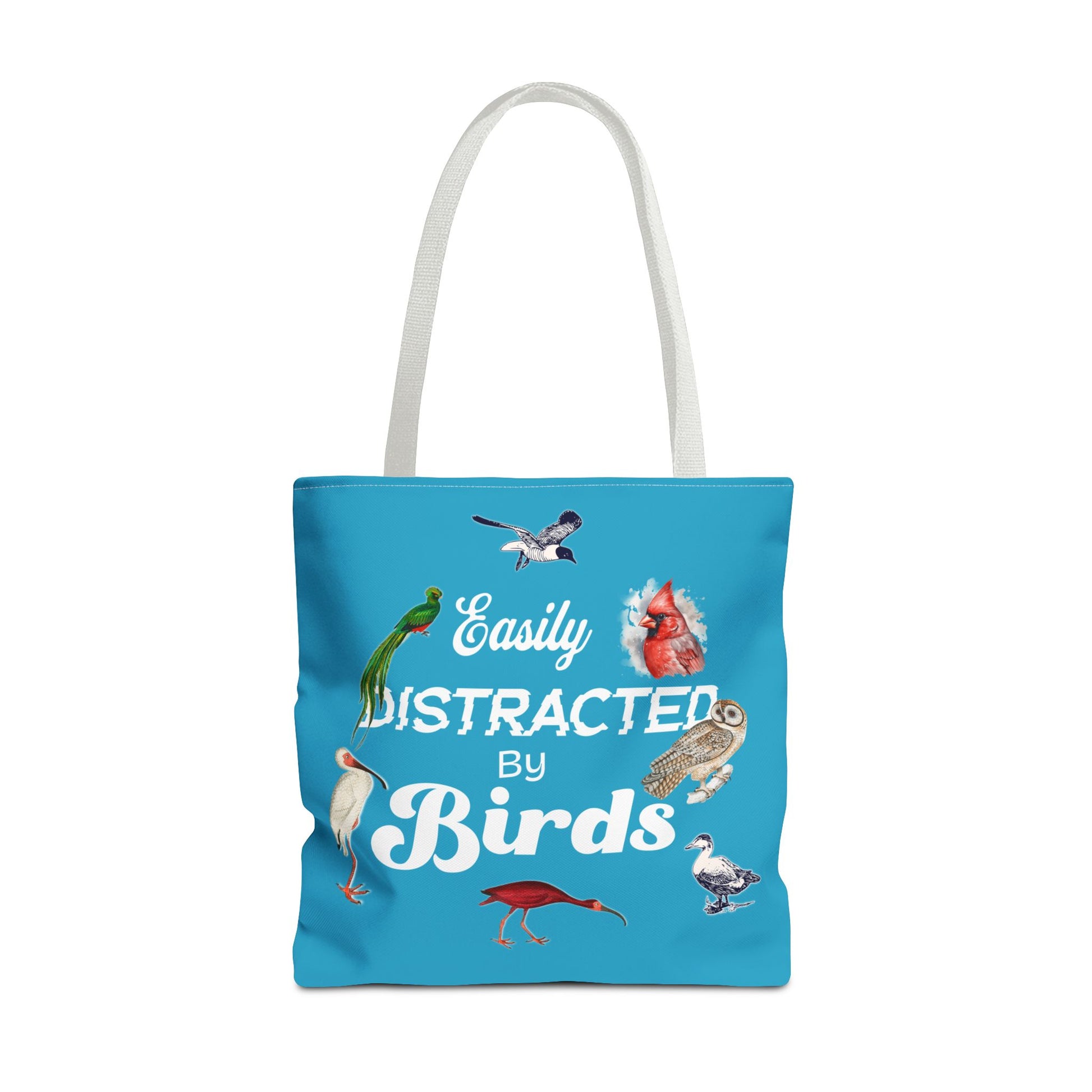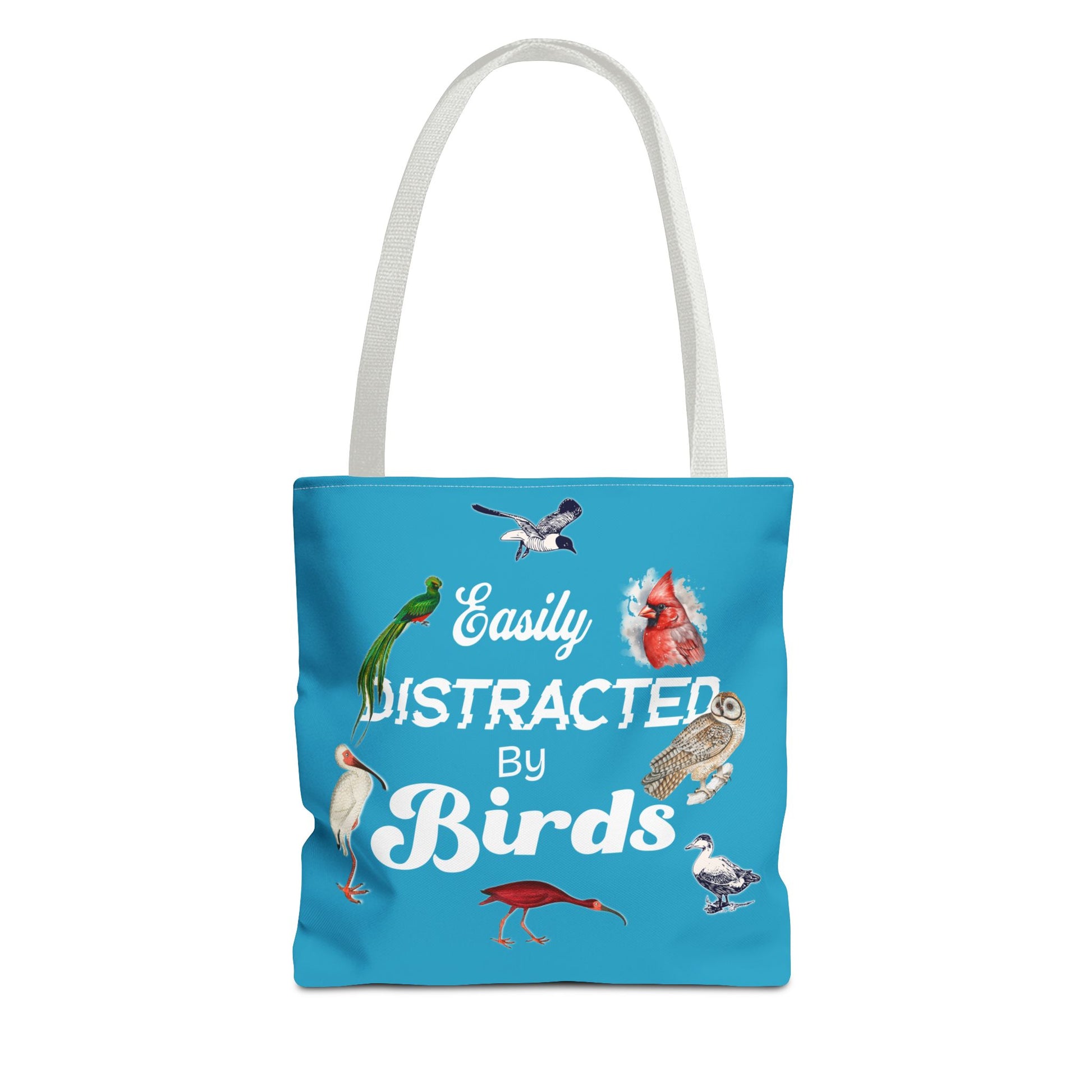 Easily Distracted by Birds Tote Bag in Teal - Fun and Quirky Bird Design for Bird Lovers