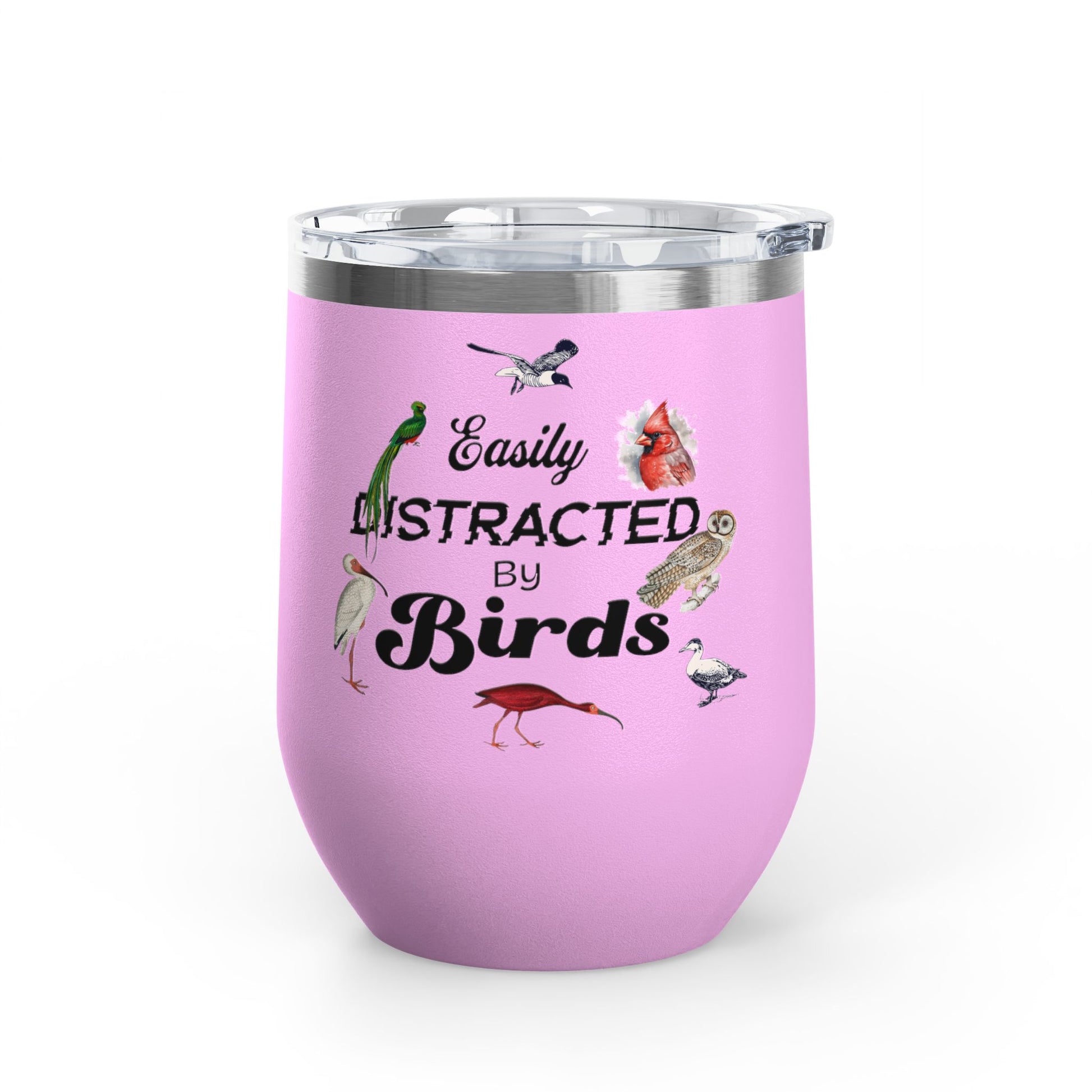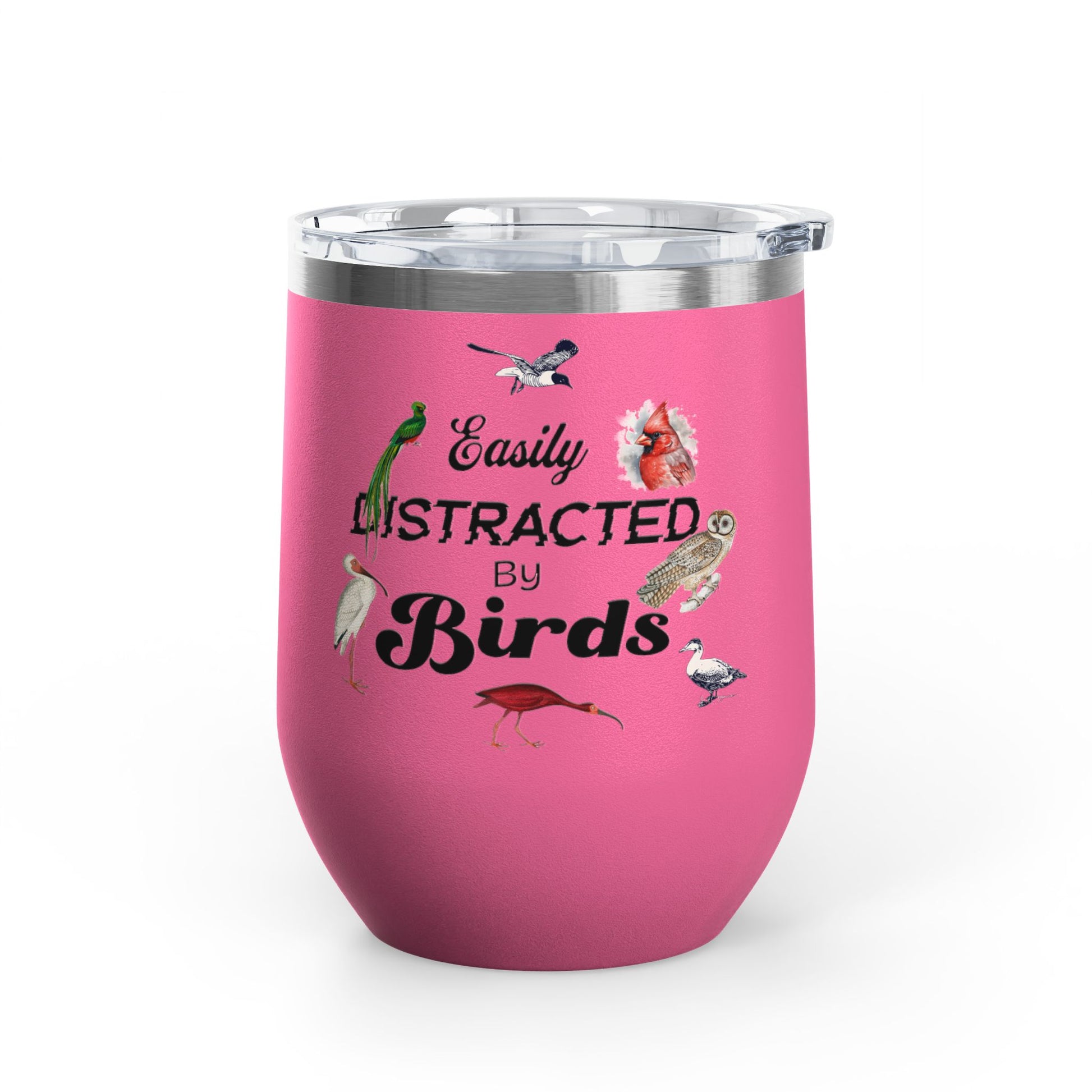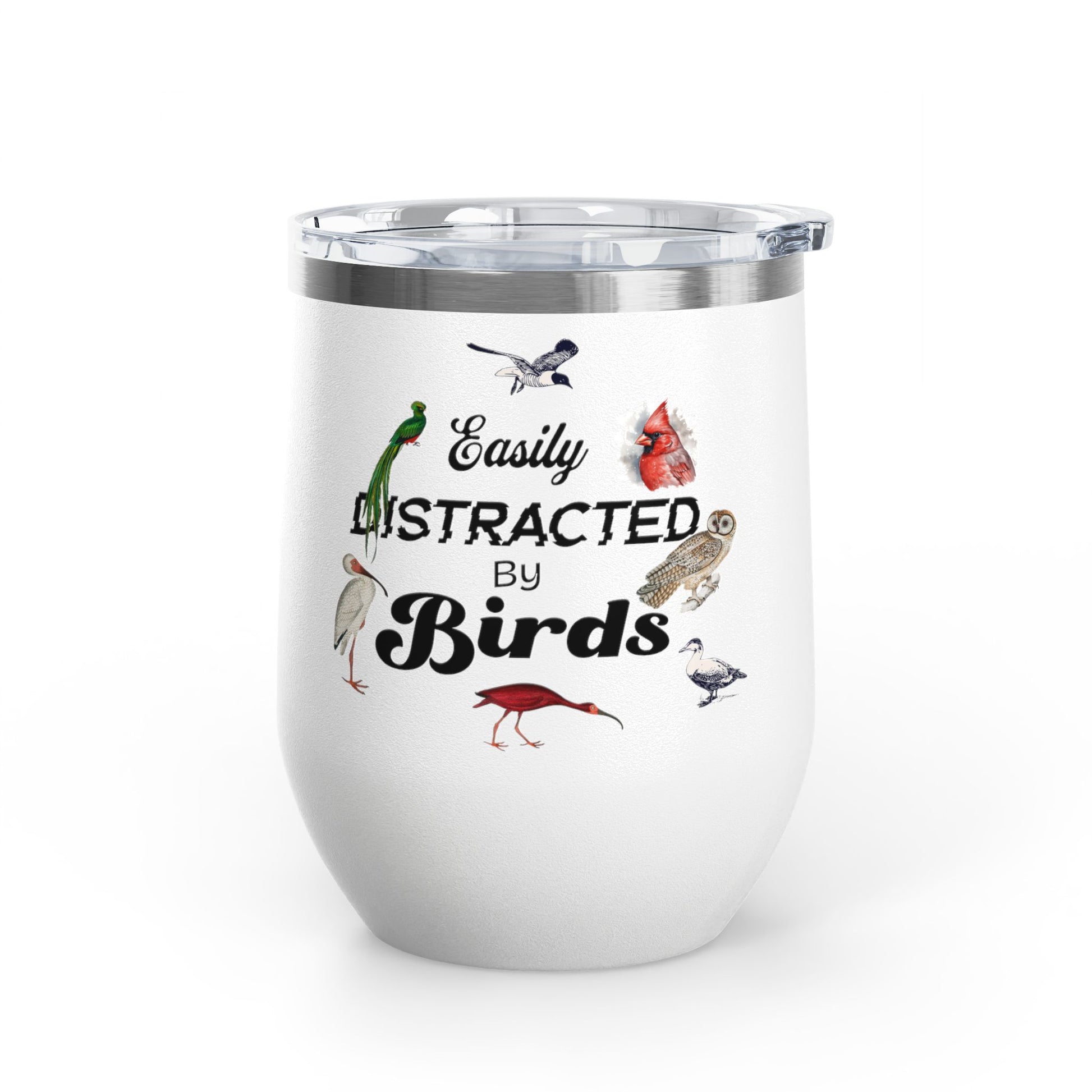 Easily Distracted By Birds Wine Tumbler - 12oz Insulated Mug for Bird Lovers
