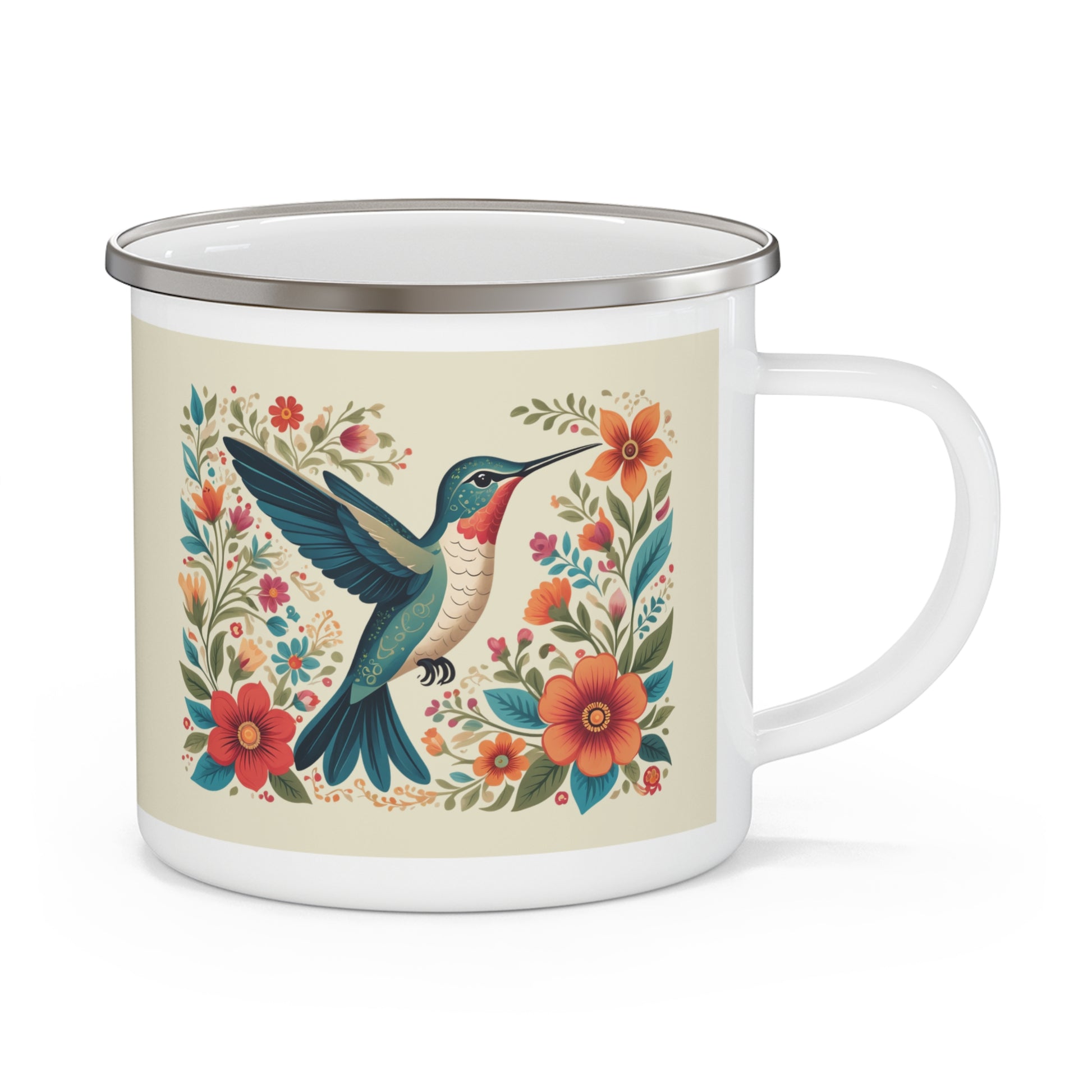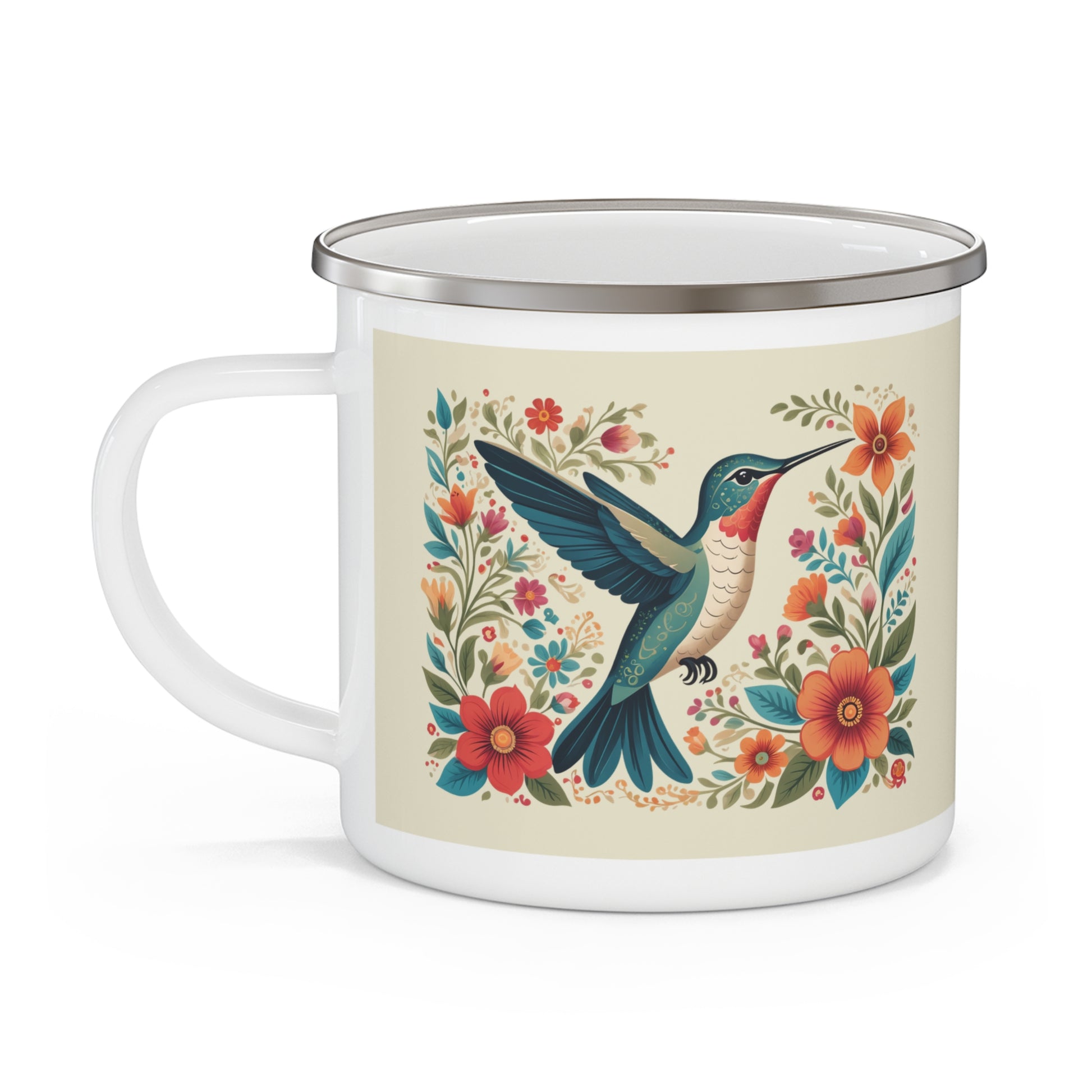 Hummingbird In Bloom Enamel Camping Mug - Nature Lover Gift, Outdoor Adventure Drinkware