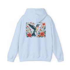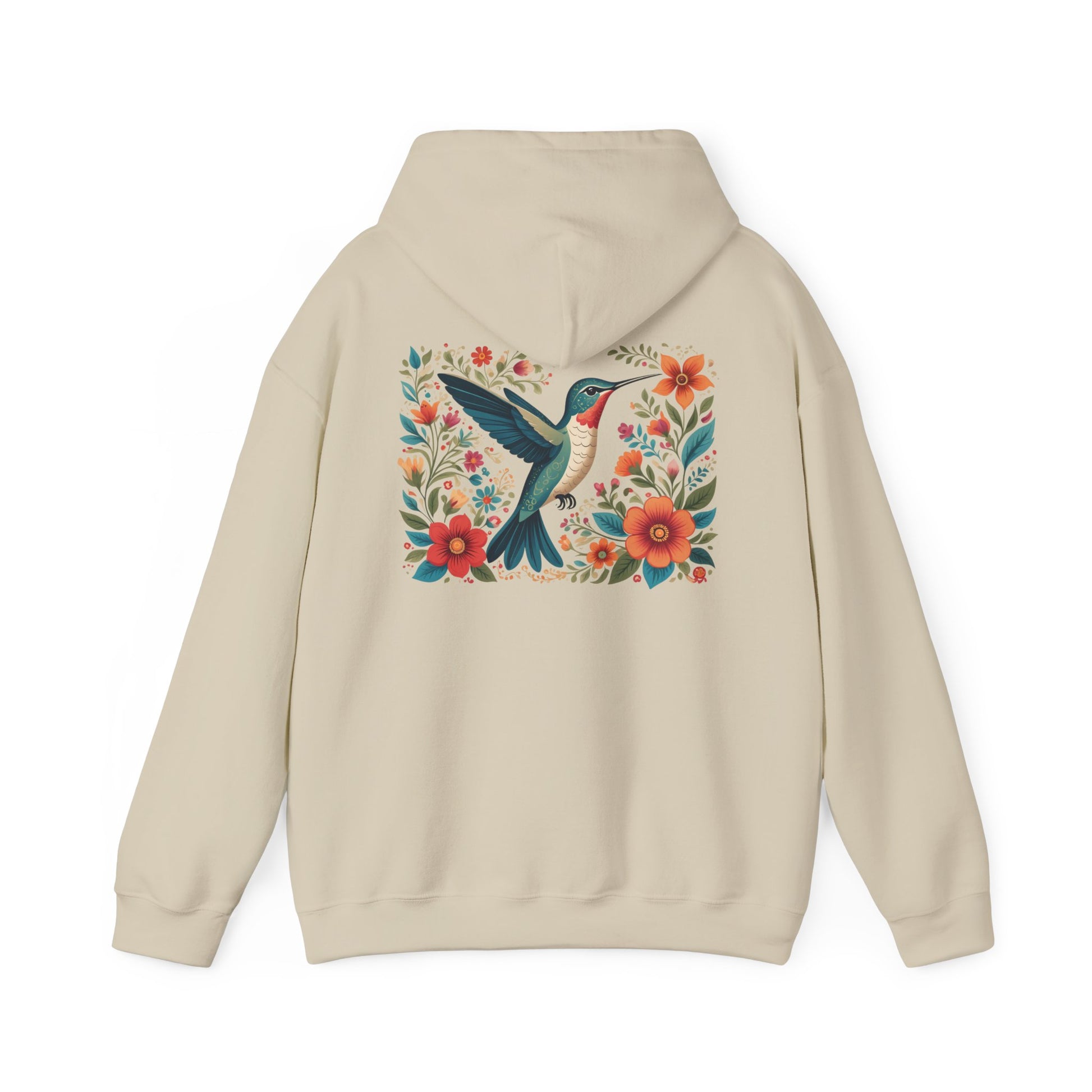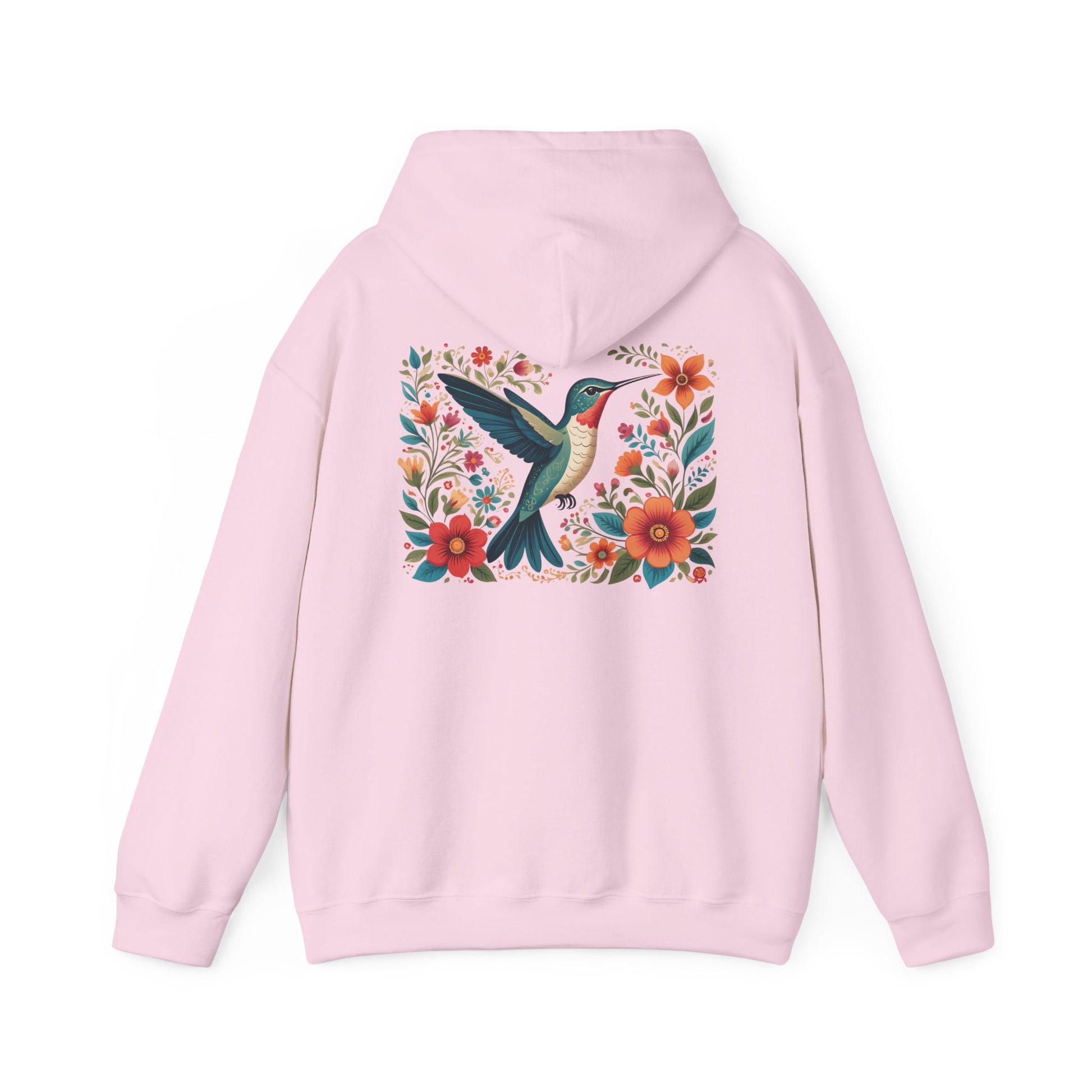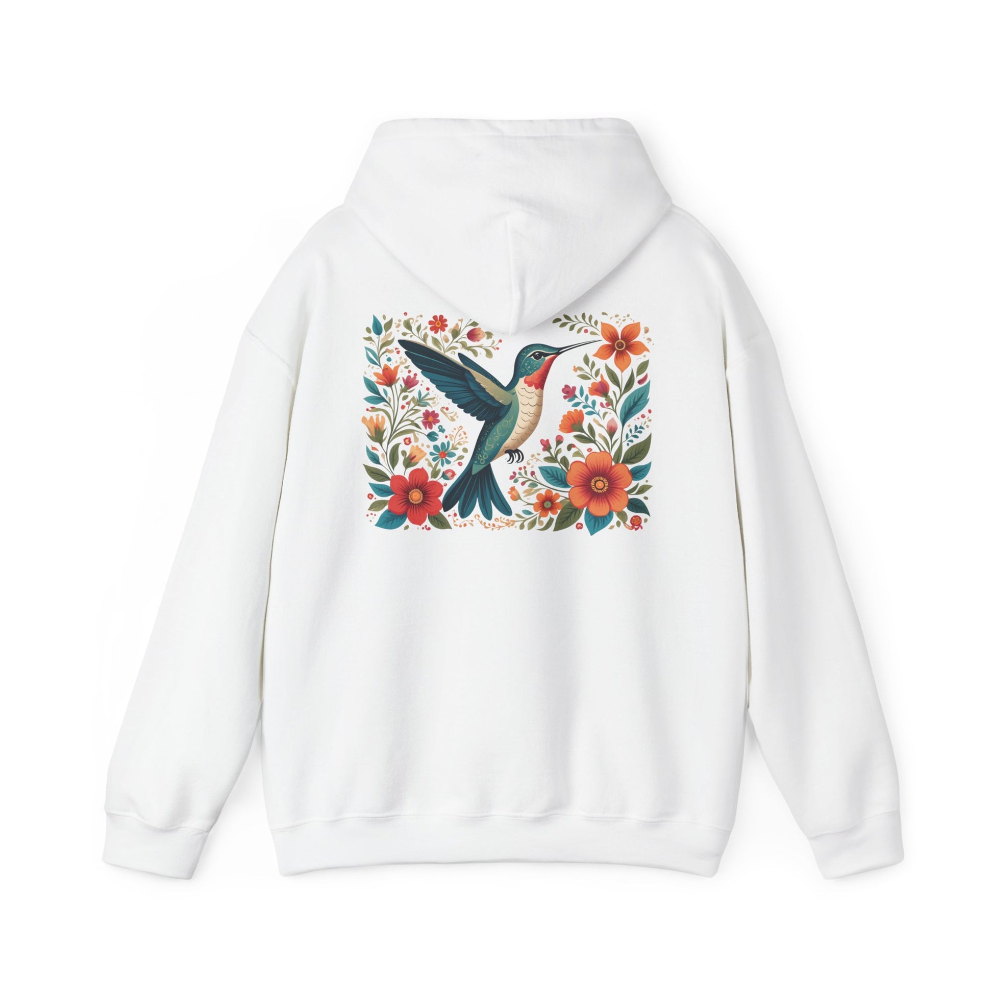 Hummingbird In Bloom Hoodie Back Design - Cozy Sweatshirt for Nature Lovers