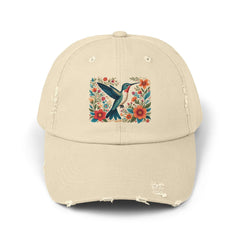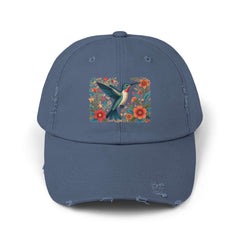 Hummingbird In Bloom Vintage Style Hat - Unisex Distressed Cap
