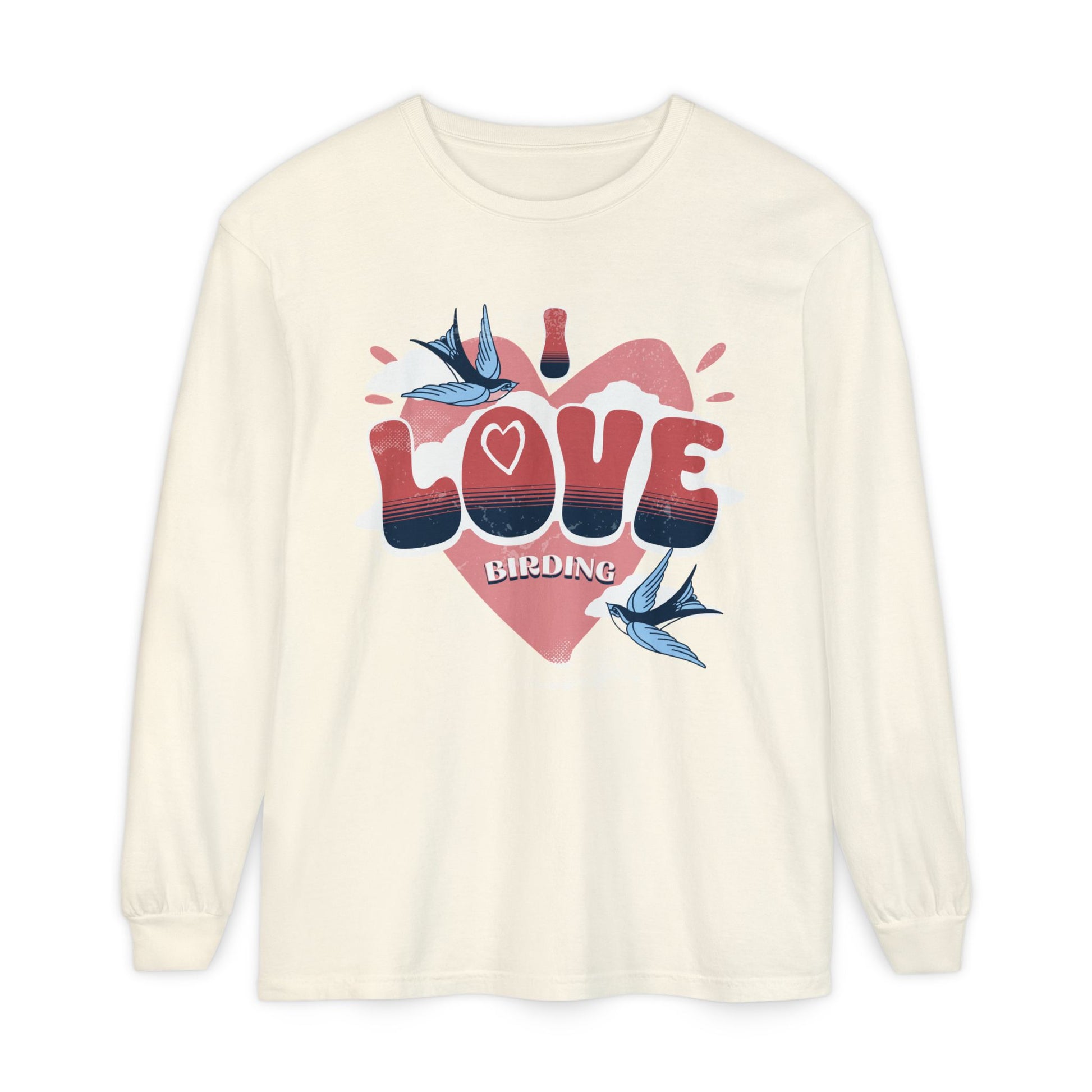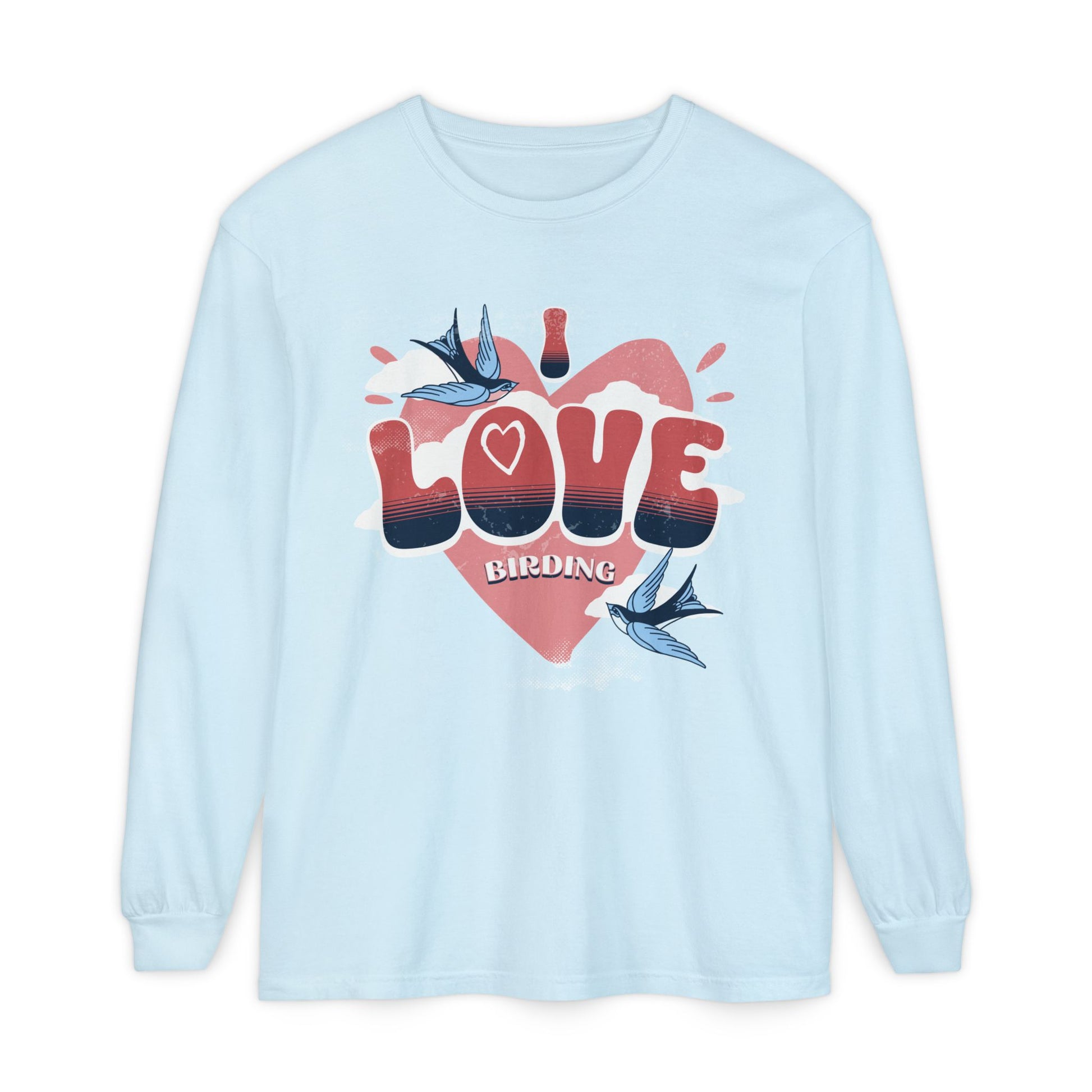 I Love Birding Long Sleeve T-Shirt - Unisex Garment-Dyed Tee for Nature Lovers