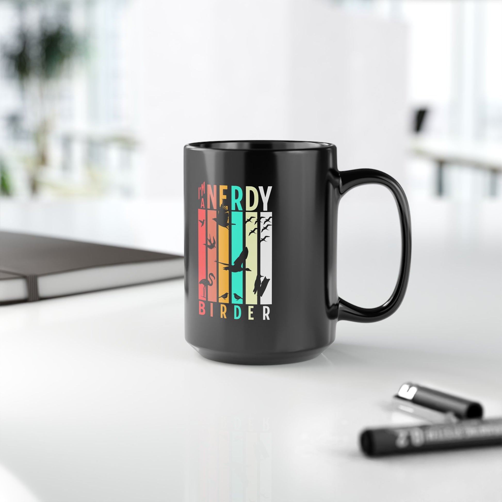 I'm A Nerdy Birder Stylish Glossy Ceramic Black Mug 11oz and 15oz