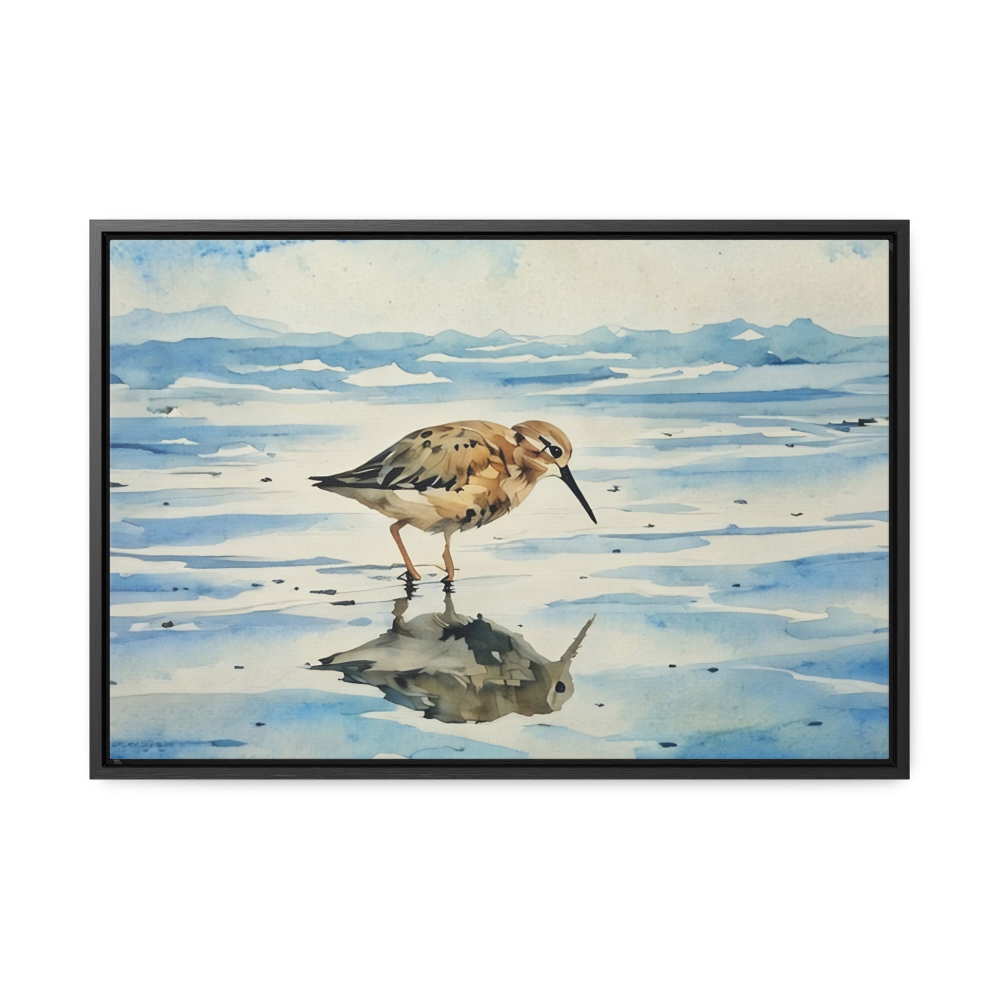 Serene Shoreline Bird Canvas Wrap - Horizontal Frame Art