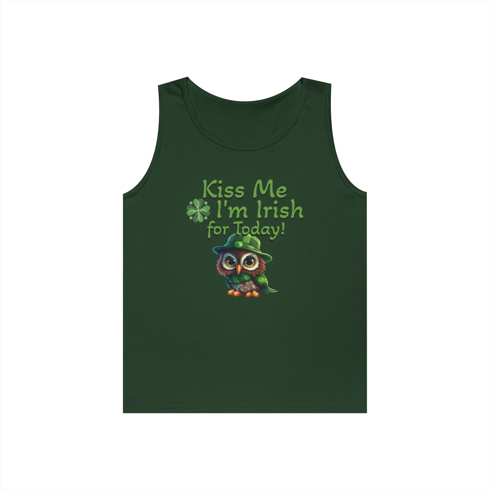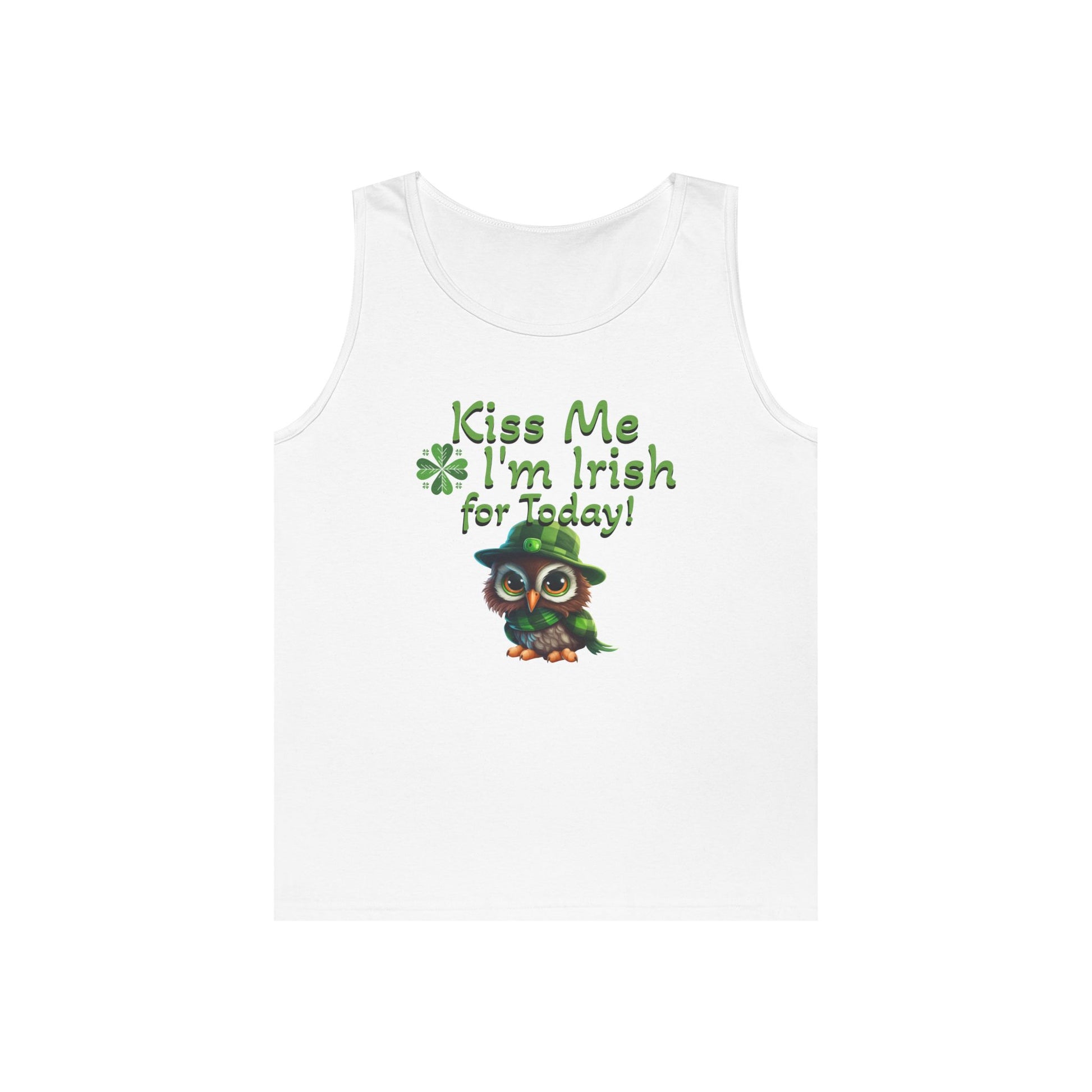 St. Patrick's Day Owl Lover's Unisex Heavy Cotton Tank Top - Fun and Playful 'Kiss Me I'm Irish for Today' Design