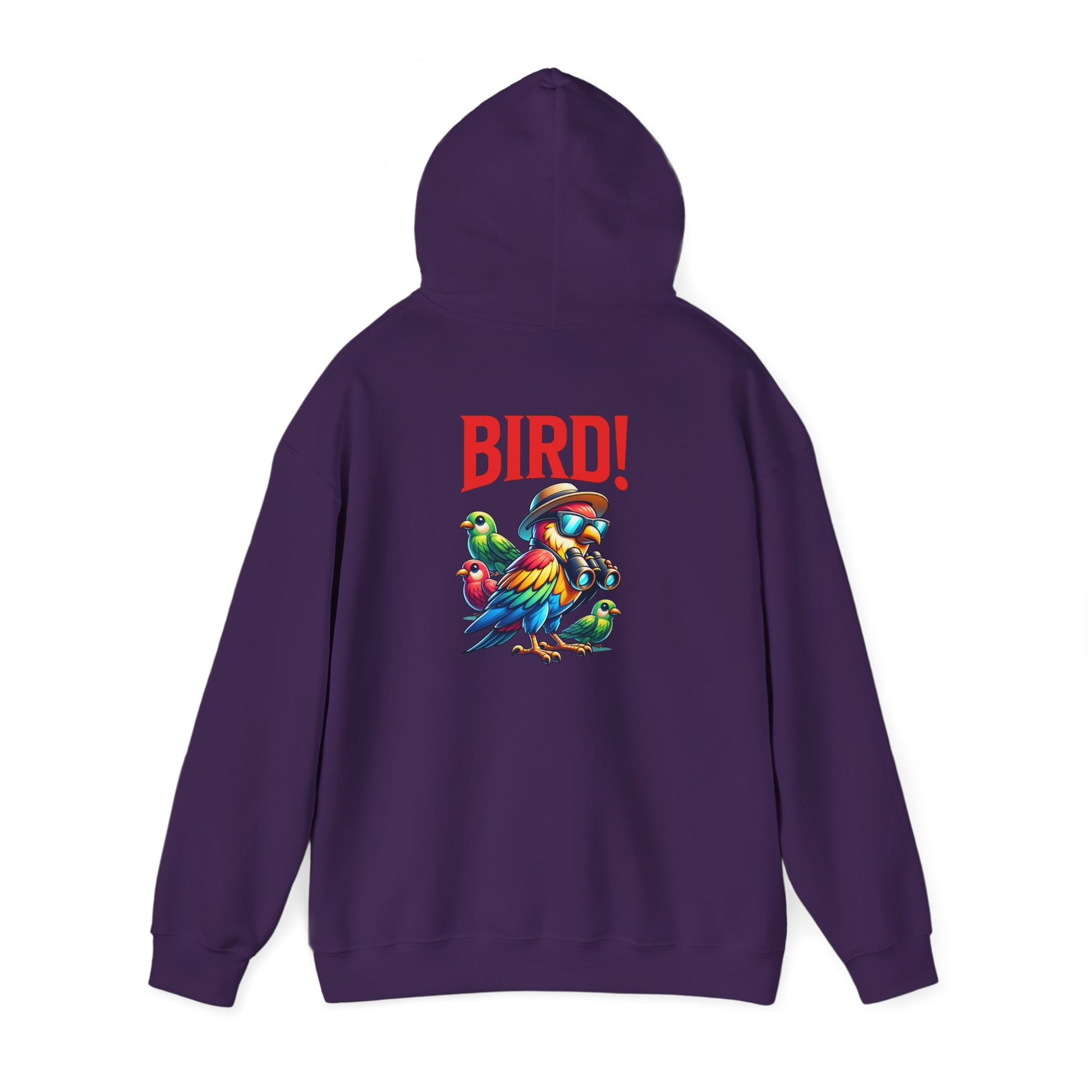The Nerdy Birder - "Bird!" Back Design Unisex Hoodie - Cozy Sweatshirt for Nature Lovers
