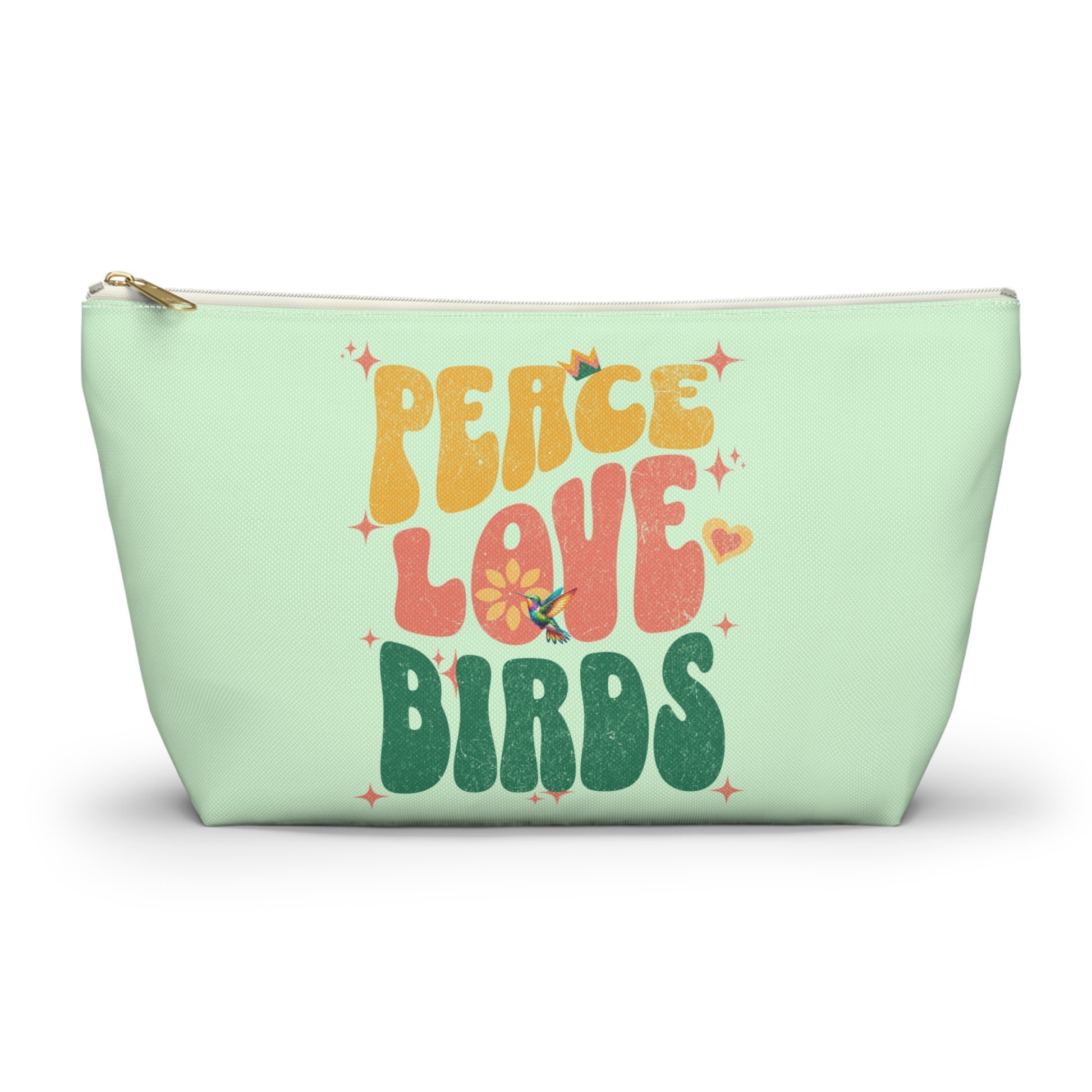 Peace Love Birds Accessory Pouch Green