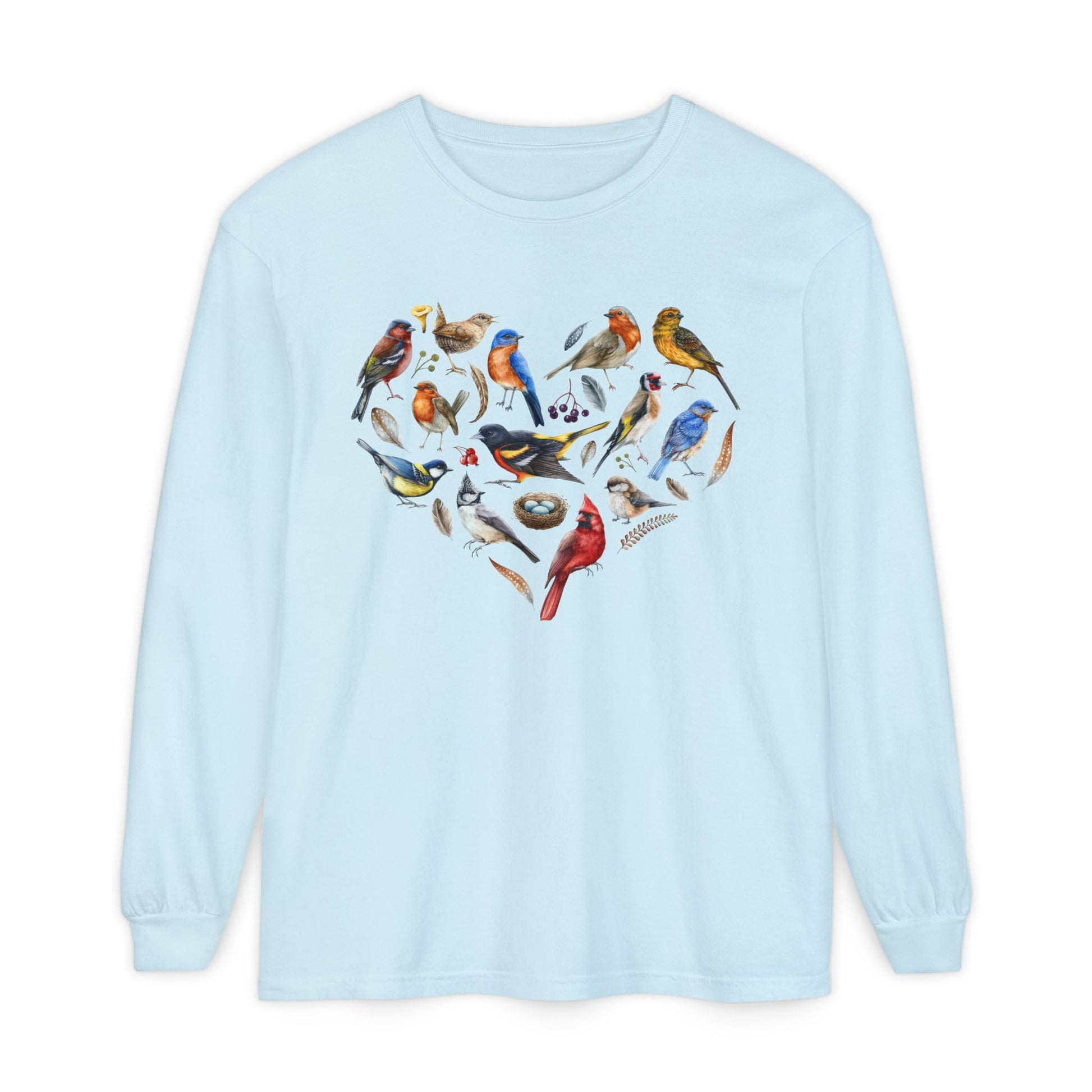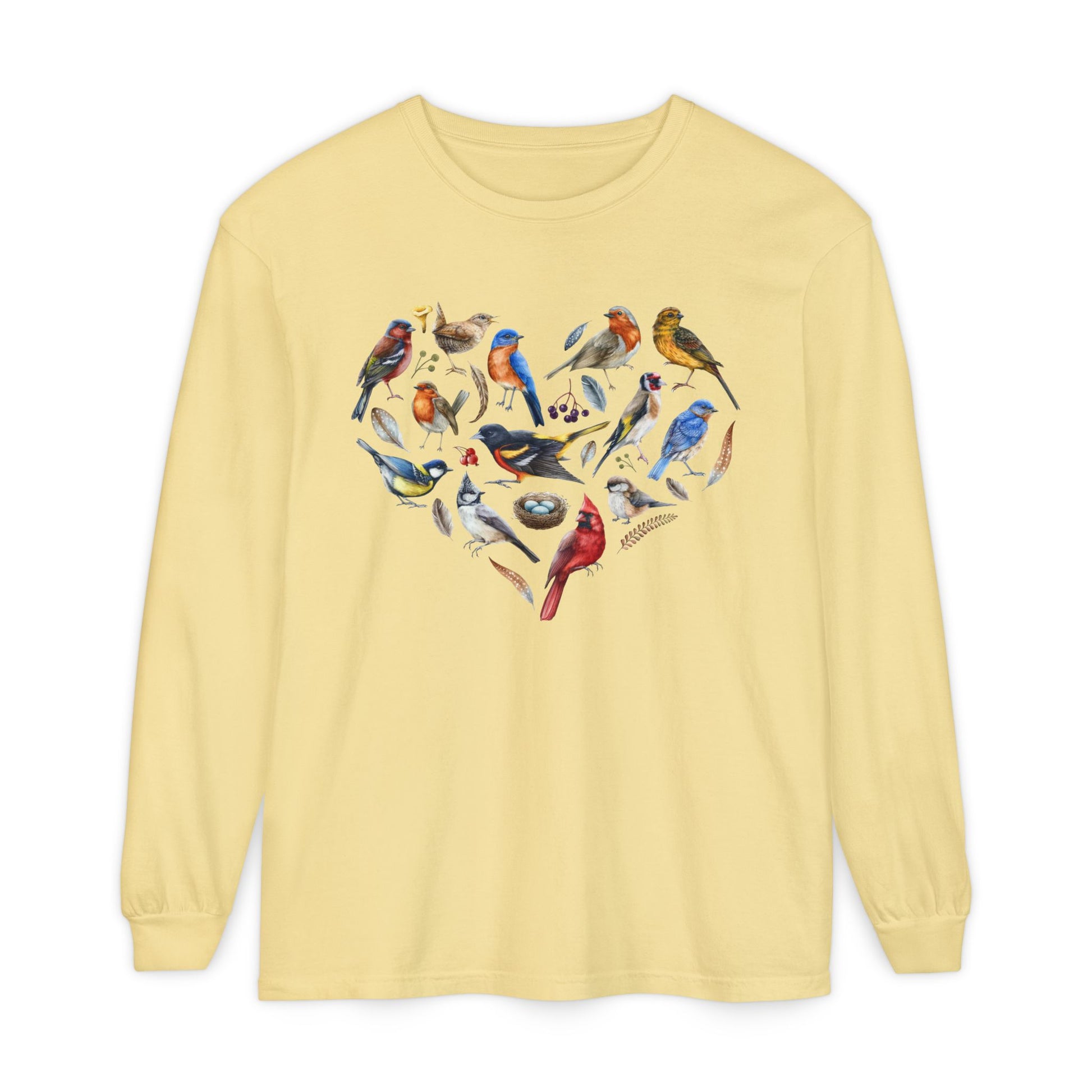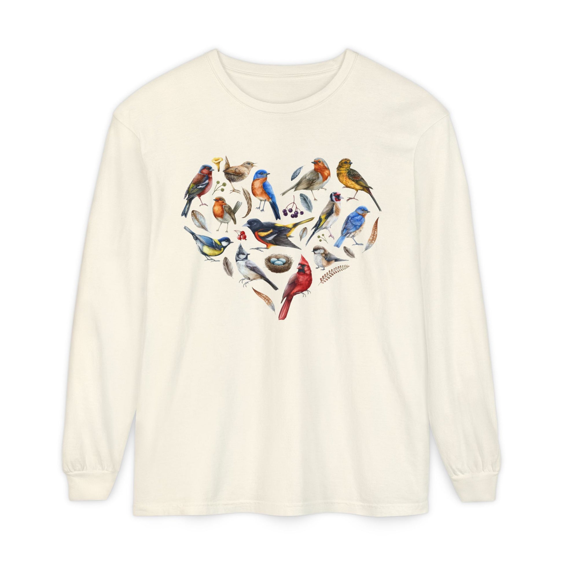 Bird Heart Unisex Garment-dyed Long Sleeve T-Shirt