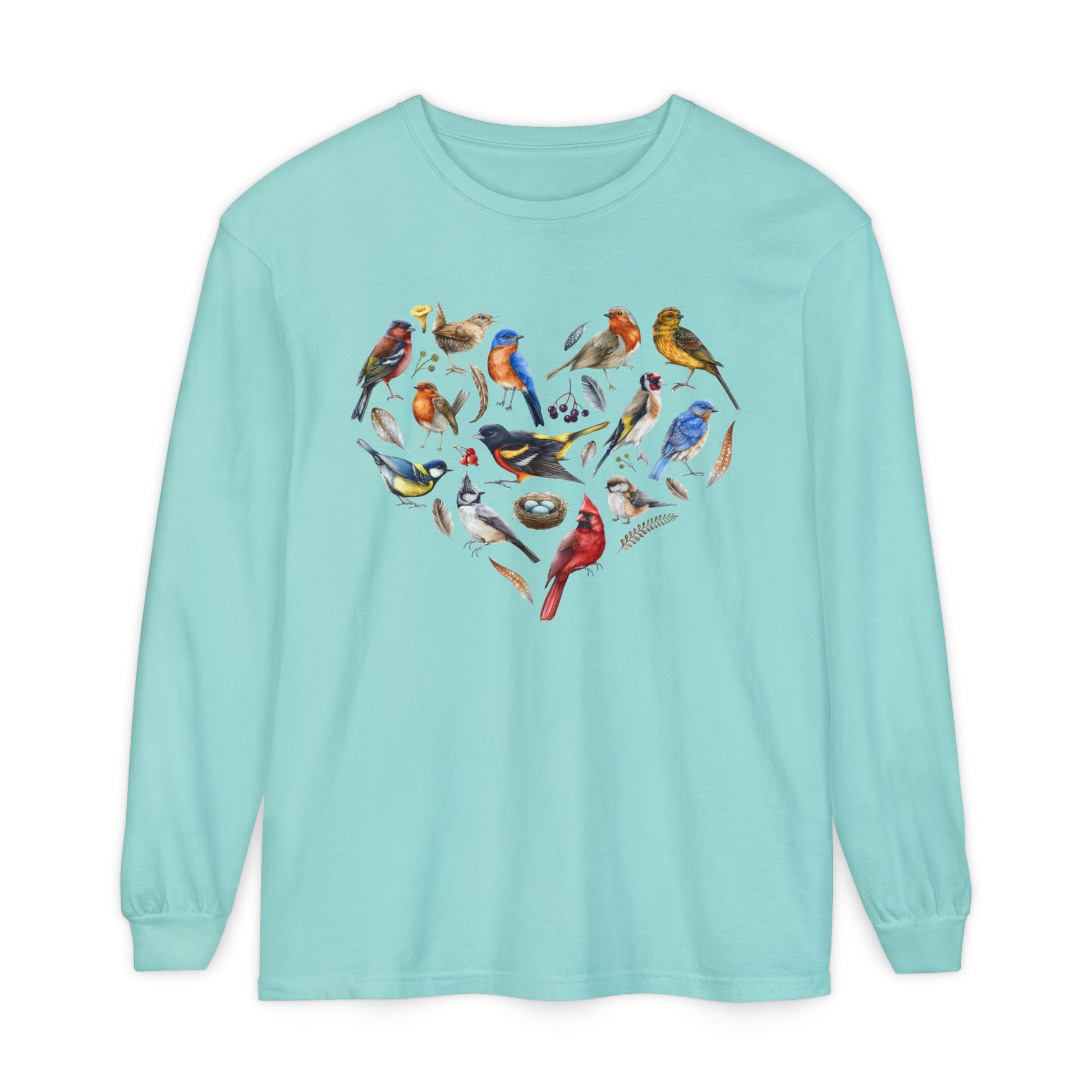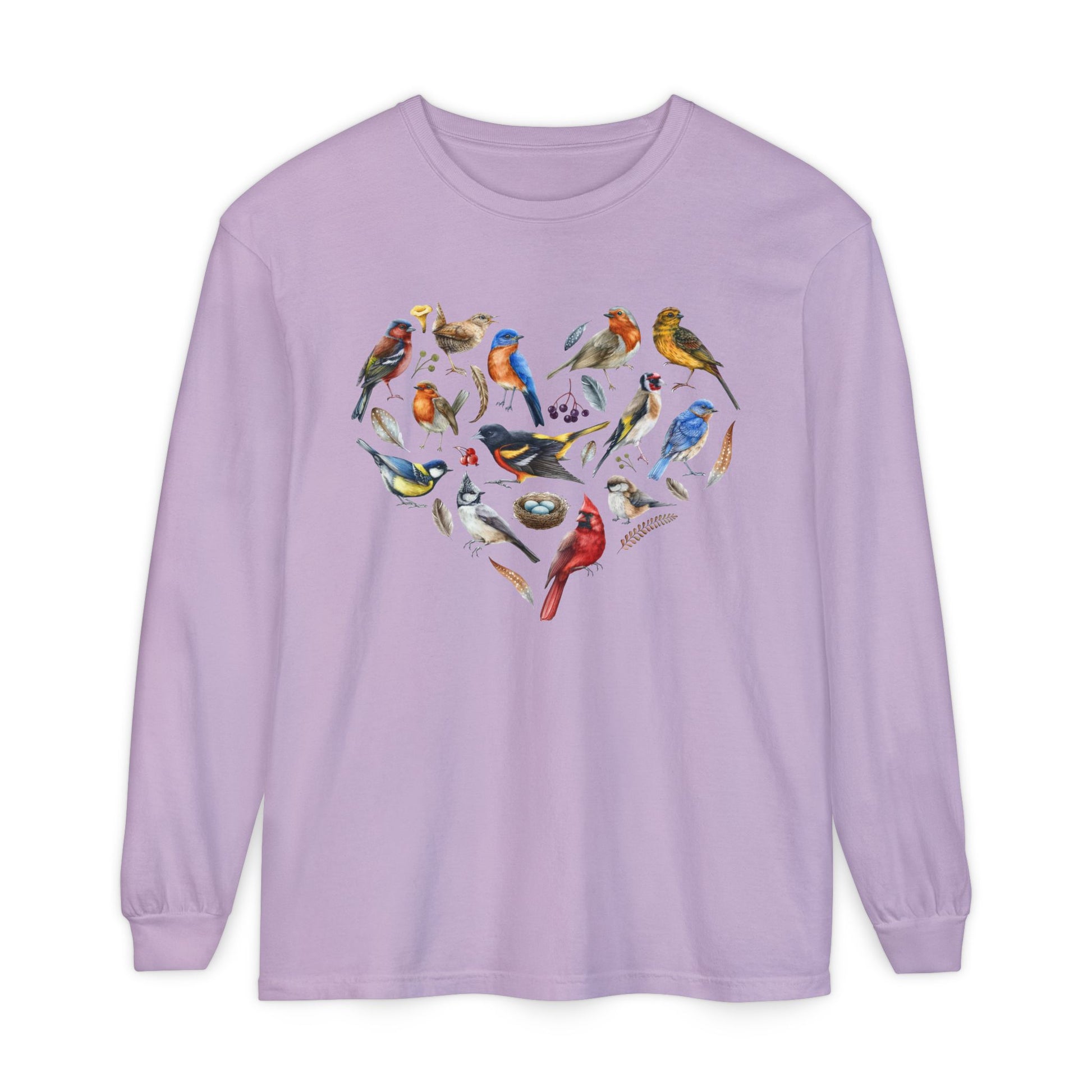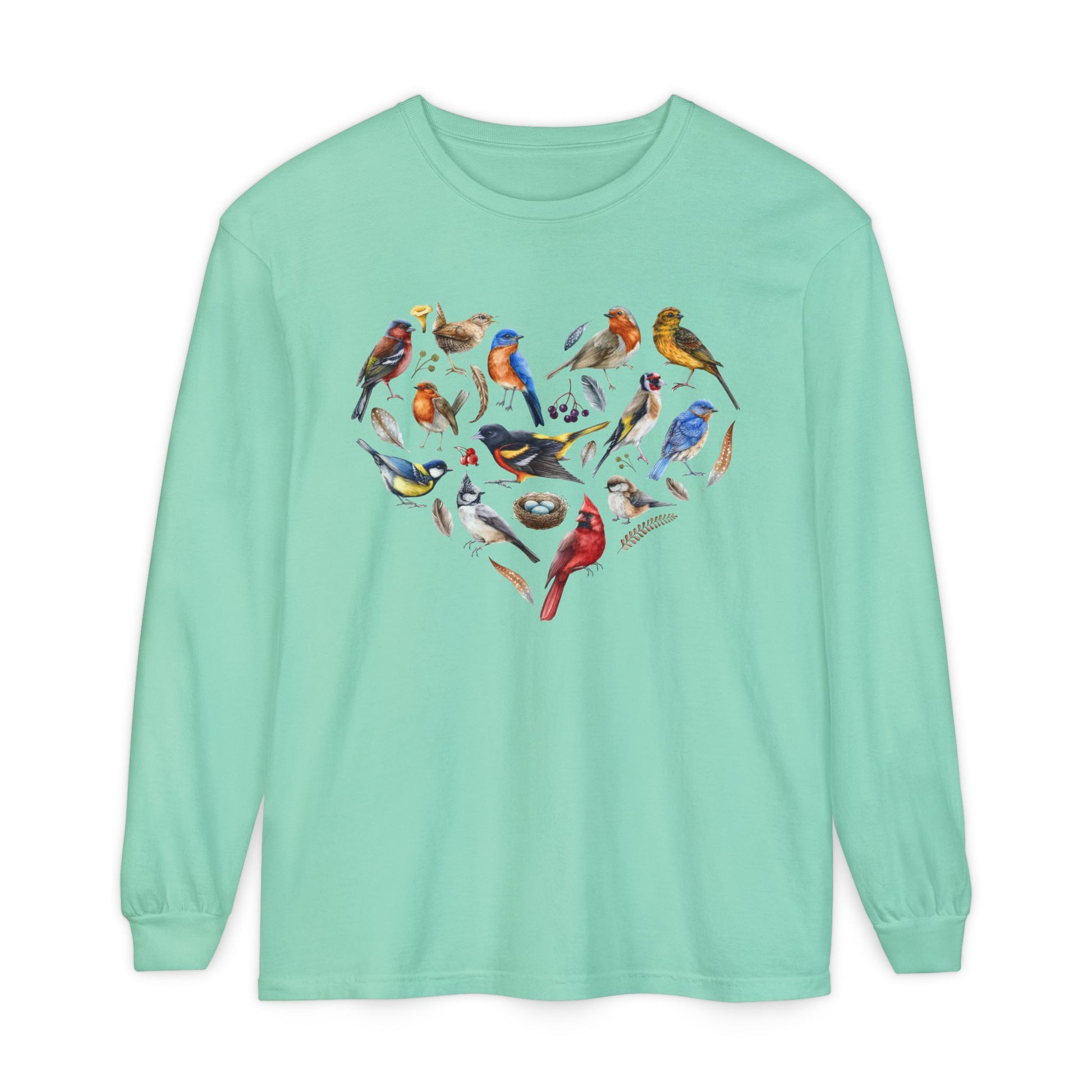 Bird Heart Unisex Garment-dyed Long Sleeve T-Shirt