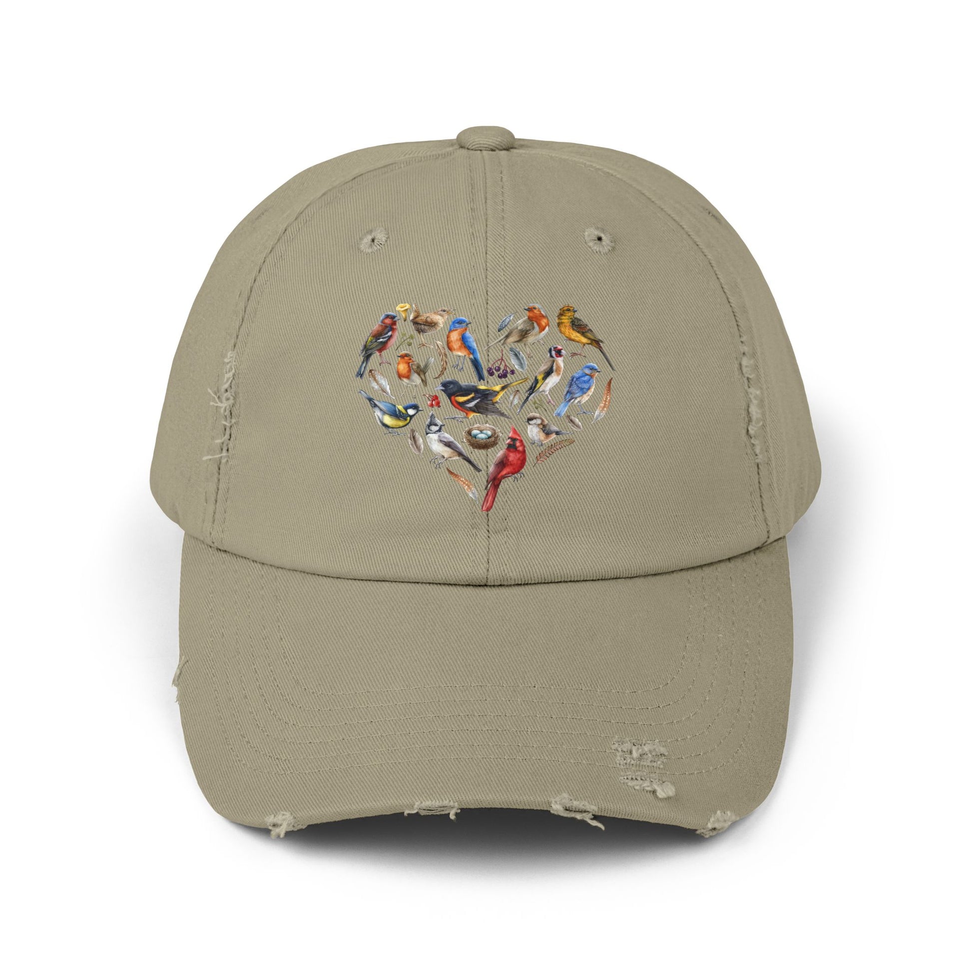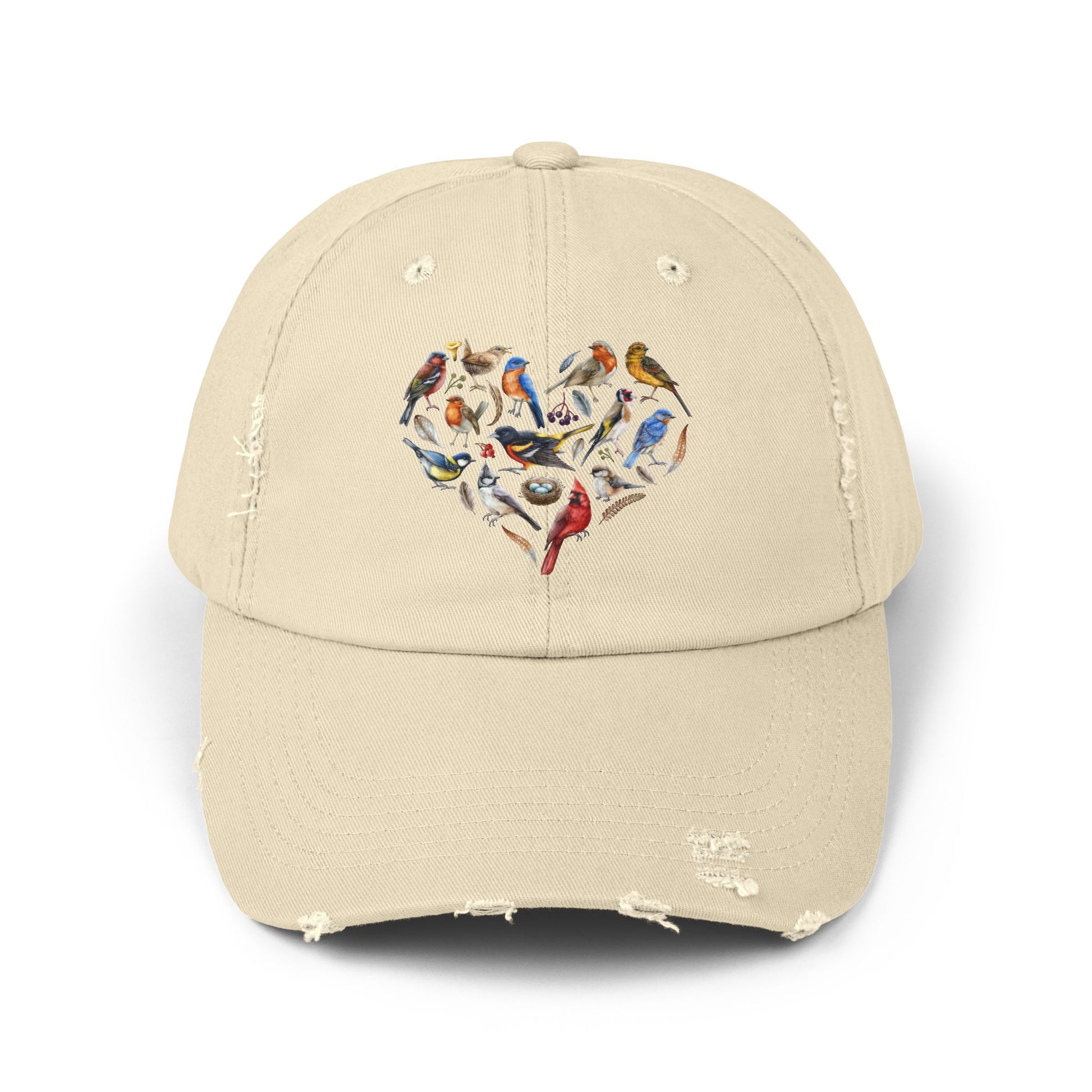 Bird Heart Vintage Style Hat - Unisex Distressed Cap