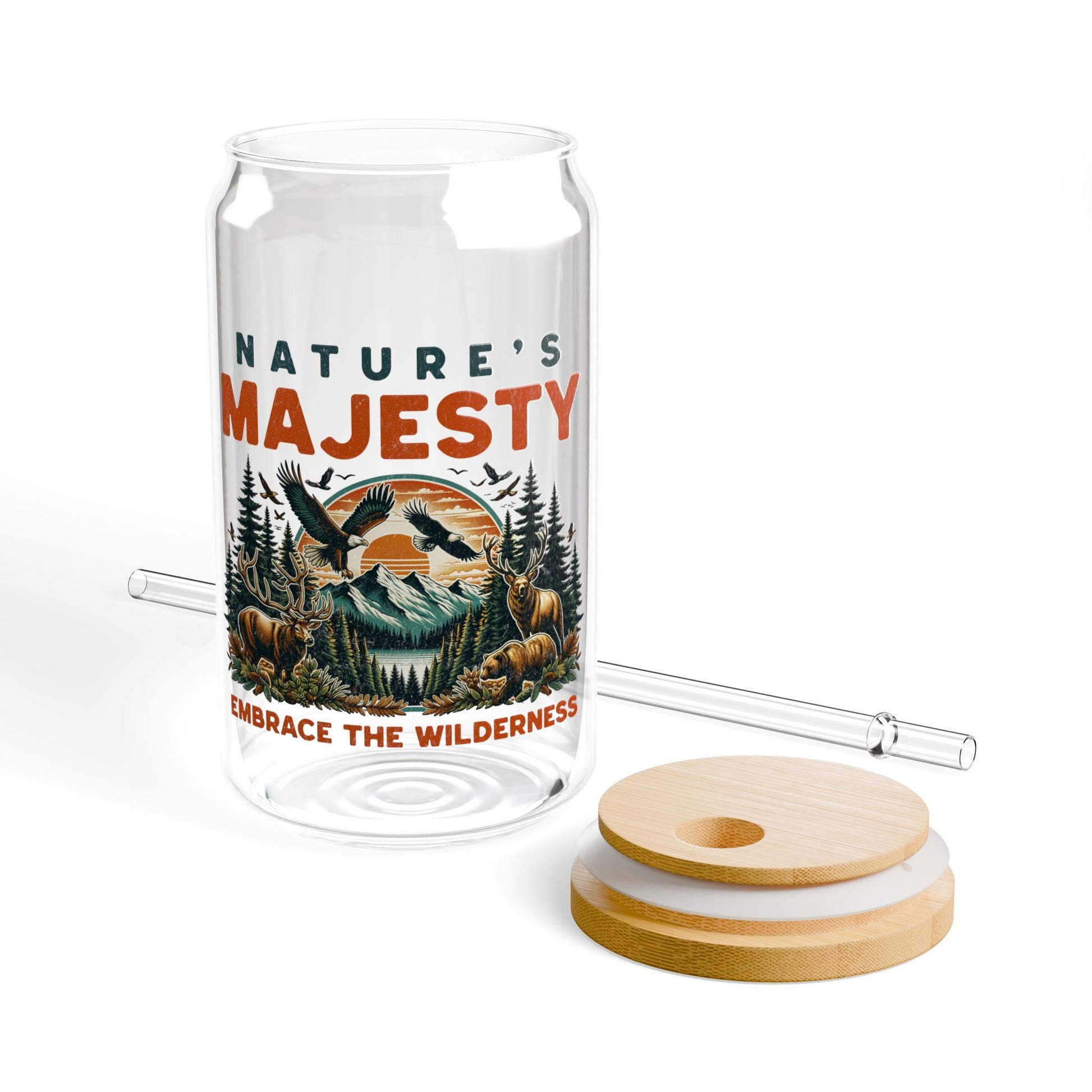 Nature's Majesty 16oz Sipper Glass With Bamboo Lid