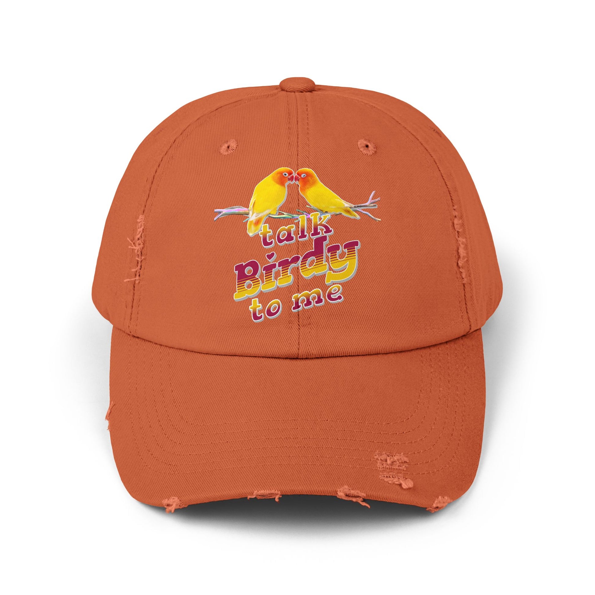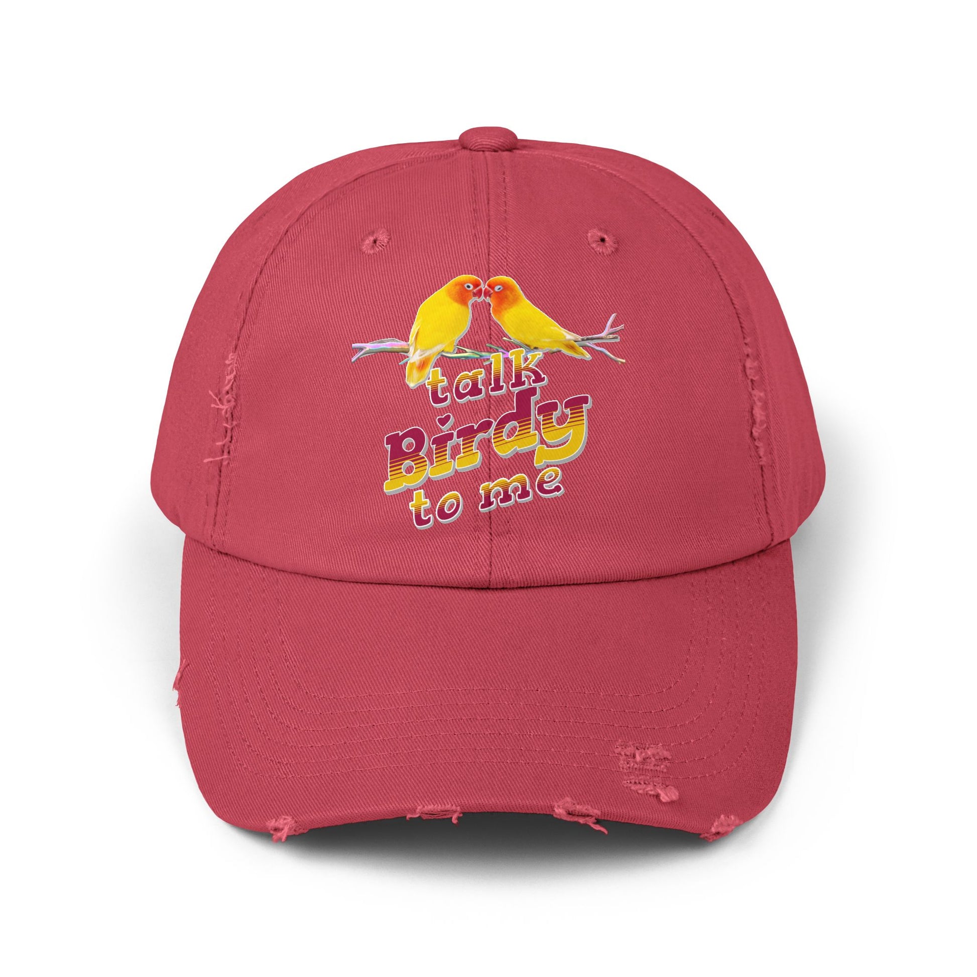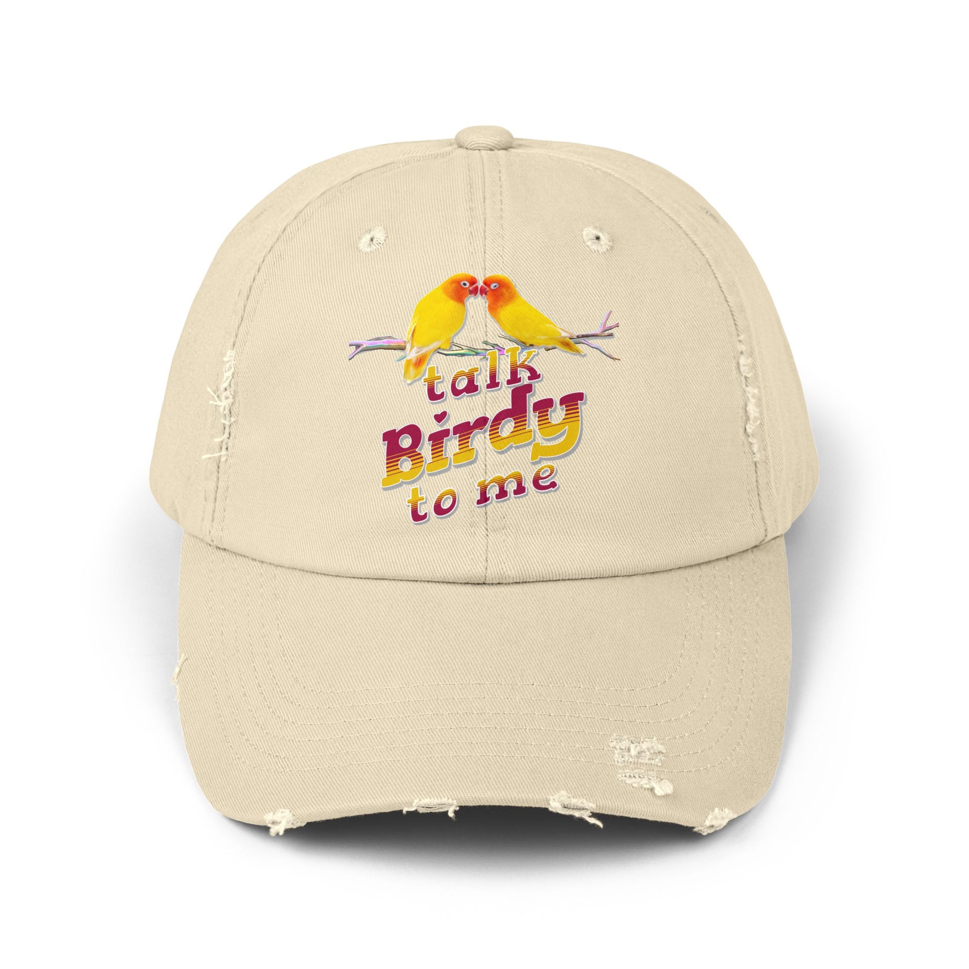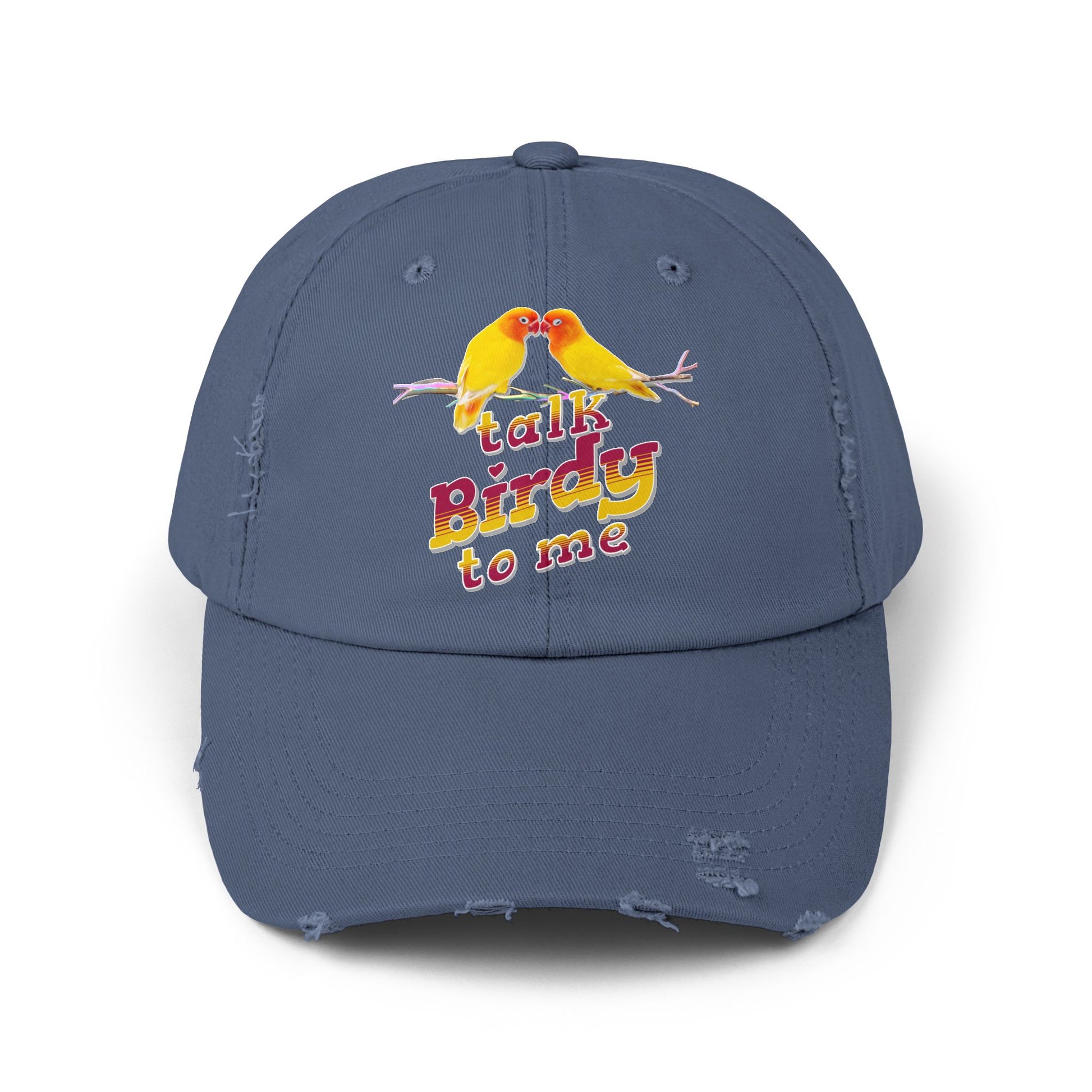 Talk Birdy To Me Distressed Cap, Casual Hat for Bird Lovers, Unique Gift for Nature Enthusiasts, Trendy Apparel for Outdoor Adventures
